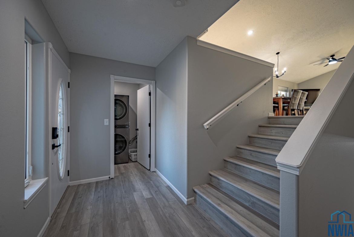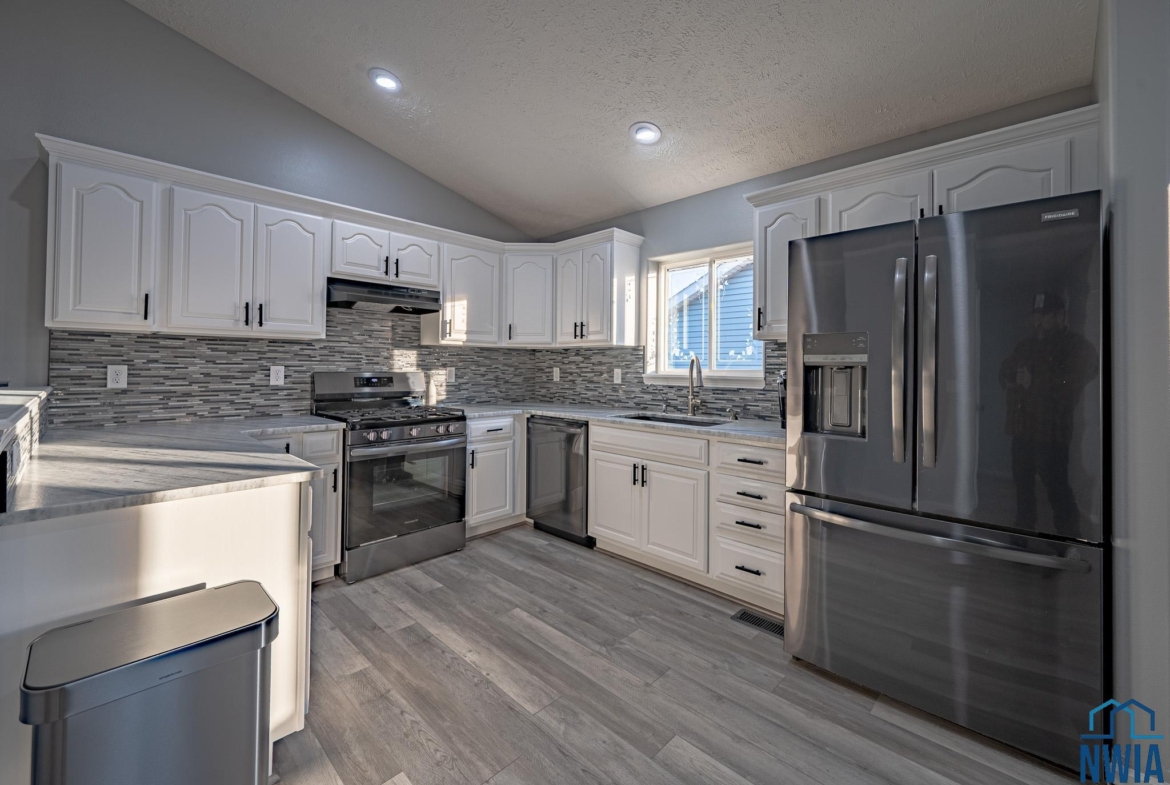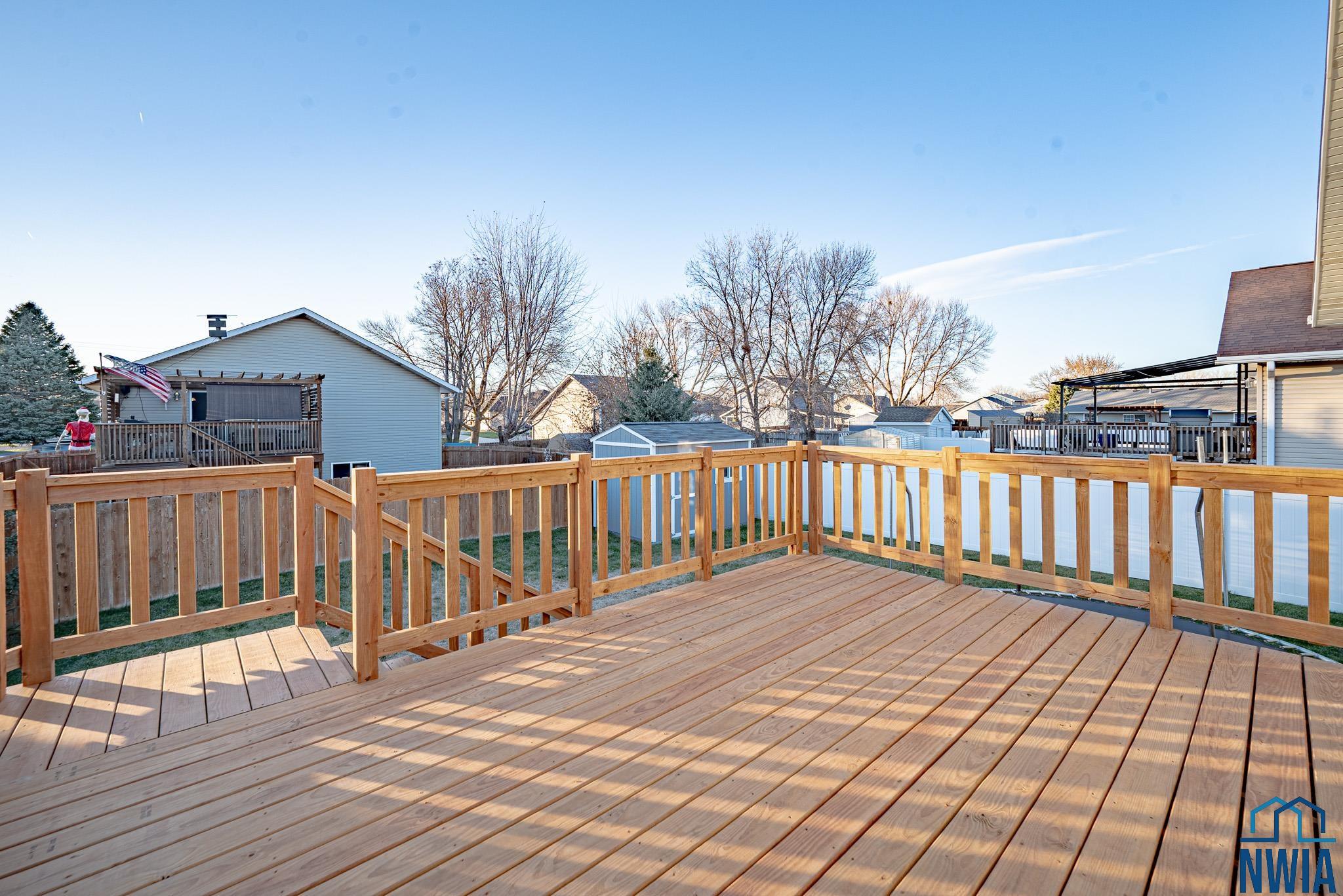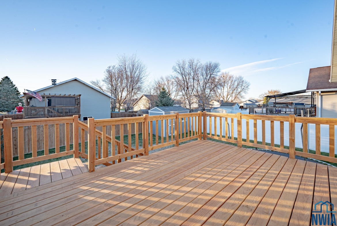 Beautifully reimagined from top to bottom, this fully remodeled residence delivers a refined blend of modern comfort and elevated design. A 50-year metal roof (installed 2016) offers long-term durability while preserving the elevated curb appeal of architectural shingles and new exterior lighting. Inside, the transformation within the last 2 months showcases a meticulous renovation: new front doors, new flooring, fresh interior paint throughout, and thoughtfully redesigned bathrooms and all updated outlets and light switches in the entire home. The kitchen features granite countertops, updated cabinetry, and all-new appliances—including a 5-burner gas range with integrated air-fryer. The upper level is enhanced by vaulted ceilings, creating an airy, open feel that elevates the home’s natural light and sense of space. All four bedrooms offer generous layouts with walk-in closets, providing both comfort and functionality. Additional upgrades include new blinds, Nest talking smoke/CO2 detectors, and a Nest thermostat. Outdoors, the fenced yard pairs with an oversized two-stall garage—deep enough to comfortably accommodate a full-size truck—and a newly expanded deck in back that was just added this fall, makes this home perfect for relaxation or entertaining. A turnkey property in every sense, this home has been carefully prepared to provide a seamless, move-in-ready experience for its next owner. Seller is a licensed Agent in IA, NE, SD, MN and TX.