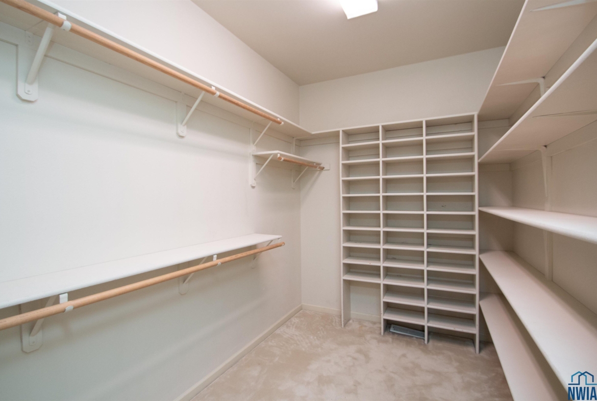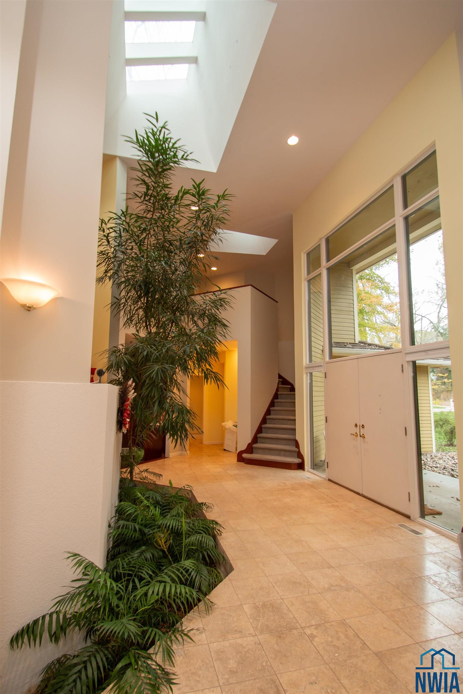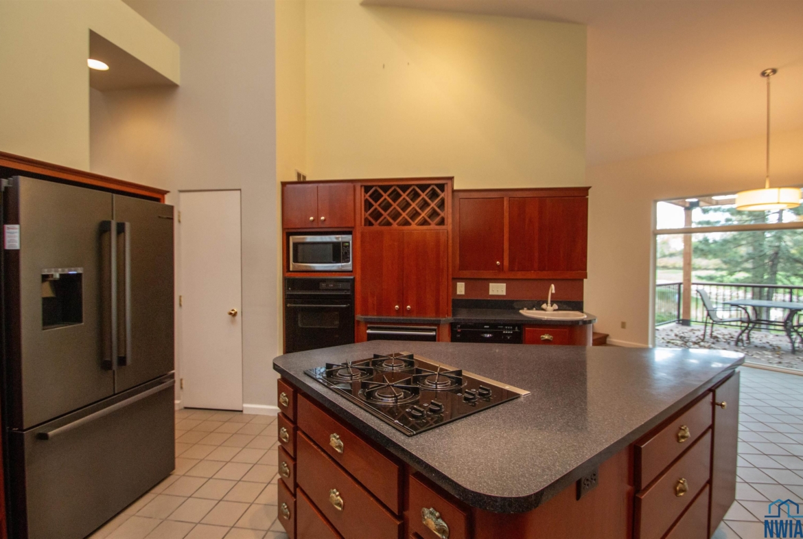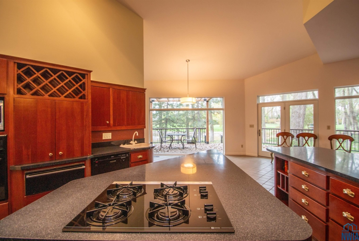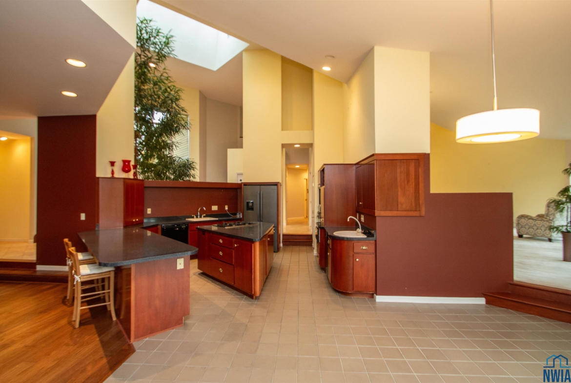 Tucked away on a wooded lot with pond & course views is this unique 1.5 story home with 4 ensuite bedrooms and 3 car garage. As you enter the 2 story foyer you will find an indoor garden area with drip line, 2 staircases, tile floor, skylight and a dbl closet for guests. Pocket doors lead to formal dining area with carpet. Vaulted ceiling in living room with wall of windows to those great views, and gas FP to curl up in front of. Casual dining area off the kitchen has floor to ceiling windows. tile floor and door to Brand New Trex Deck. Kitchen features cherry cabinets with an island, 2 Bosch DW, a gas cooktop, commercial fan, appliance center, warming drawer and a pantry. For more casual living there is a family room with wood floor, wood FP with tile hearth and stacked stone surround as well as a wet bar area. Through French doors to the master suite bedroom with gas FP, built in desk area and door to front of home. Retreat to the bathroom with tile floor, dbl vanity, jet tub, toilet/shower room, 10 x 6 WIC and door to new deck. Other side of home has a bedroom with dbl closet and door to a private deck. The 3/4 bathroom off this bedroom has a single vanity and can be accessed from the hall as well. Going up 1 of the front stairs is a 10 x 4 loft overlooking the entry and leads to a Junior Suite with bedroom with wood floor, door to Juliet balcony with pond view, a WIC and door to dry storage, a full bathroom and laundry area. Going up the other stairs is another 11 x 9 loft area, utility closet, and another Junior Suite with bedroom with carpet, door to Juliet balcony with pond view, a full bathroom with laundry area, 2 dbl closets and skylight. UPDATED FEATURES: Shingles replaced with steel roof 2015, new 6″ gutters with leaf guard, New concrete driveway & sidewalk 2025, New Trex deck on the back of the house 2023. New Pella windows main floor and second floor on the west side of house. FP: 2 gas-1 wood. 3 HVAC. $20,000 exterior paint allowance.