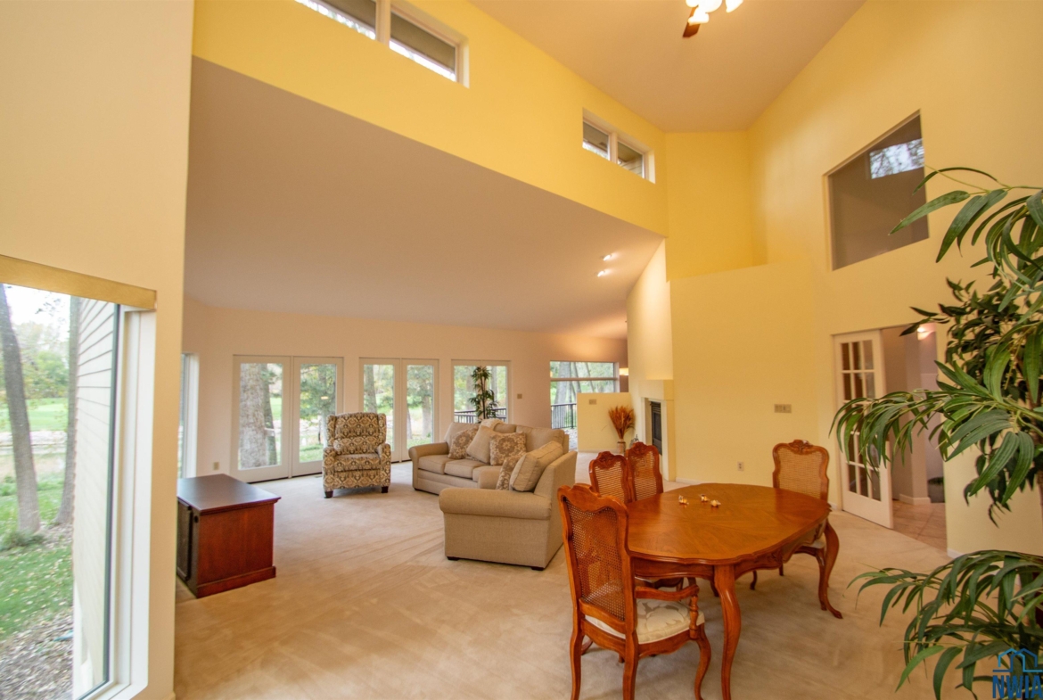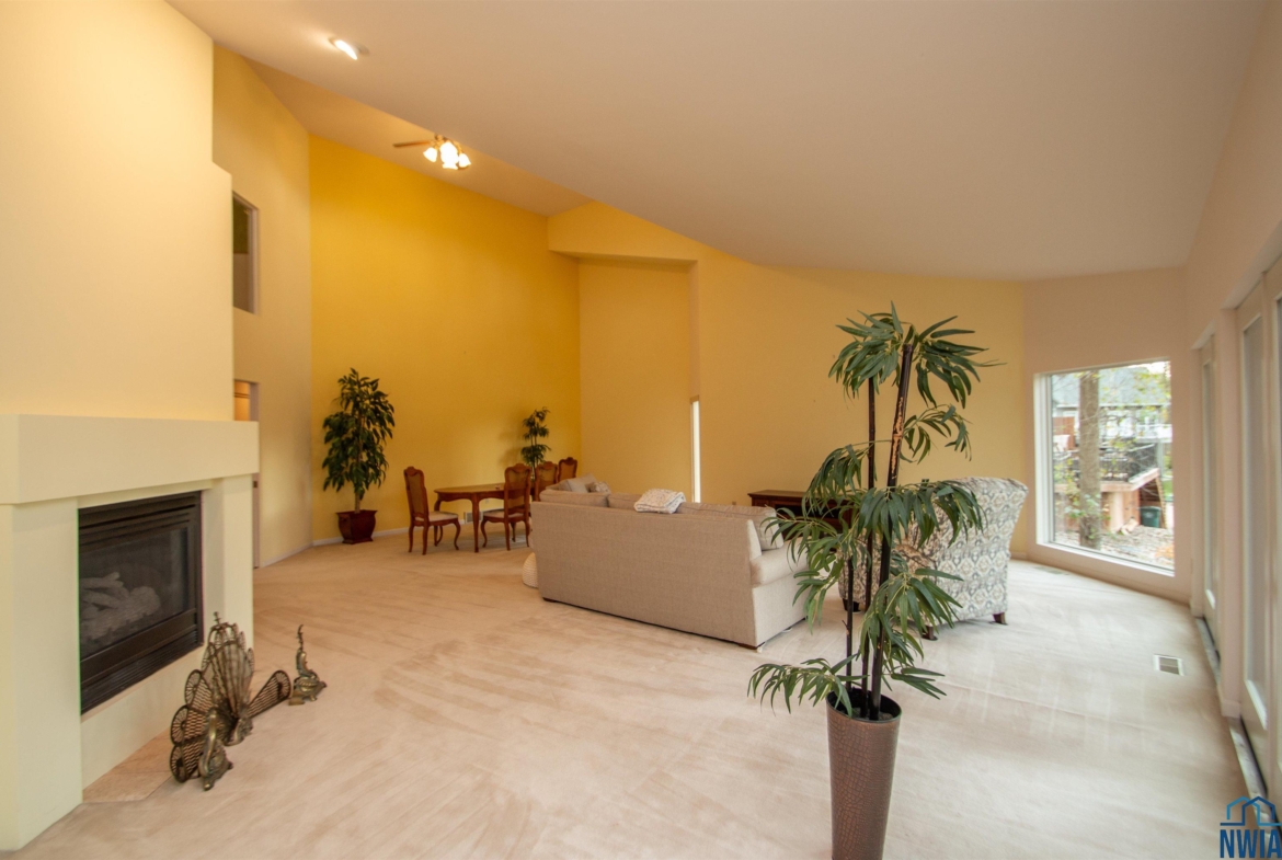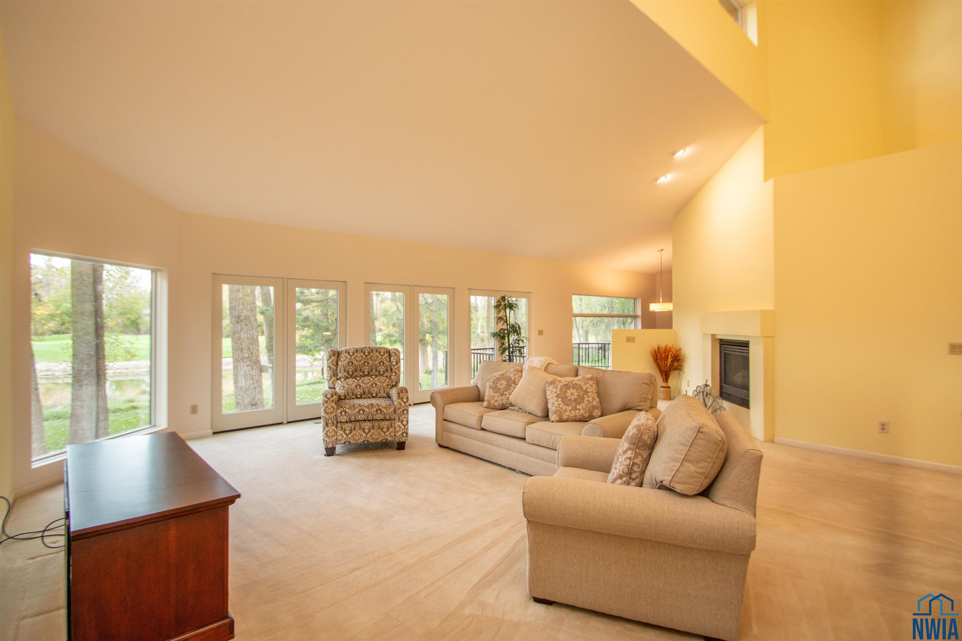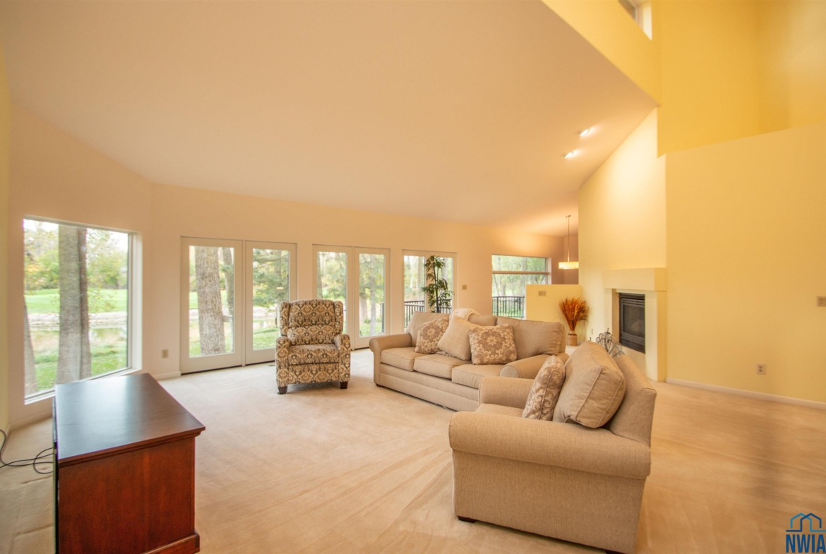 Living | Main | 25 x 17 | carpet, vaulted, windows w/ pond view, gas fp |