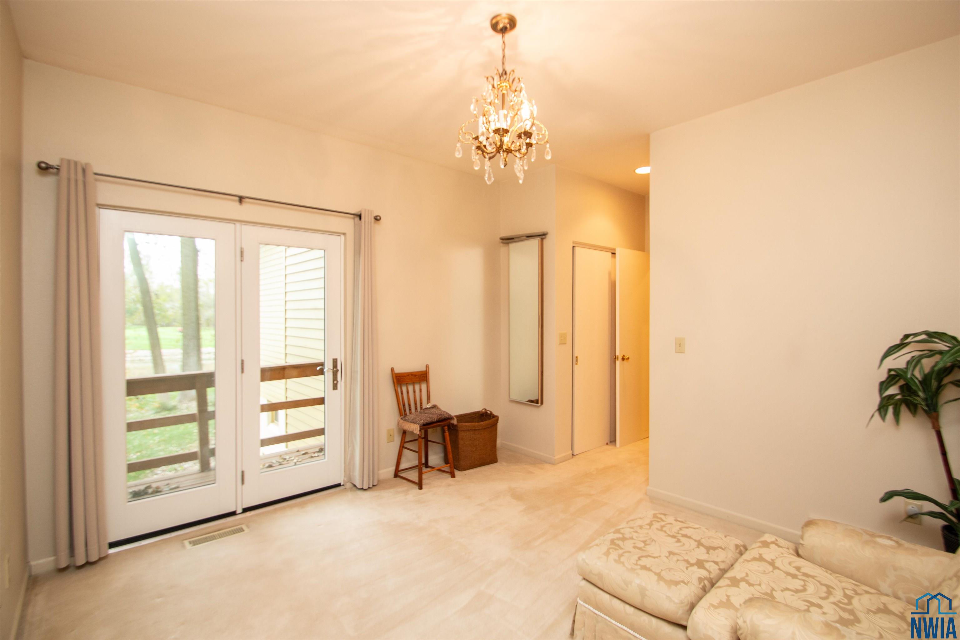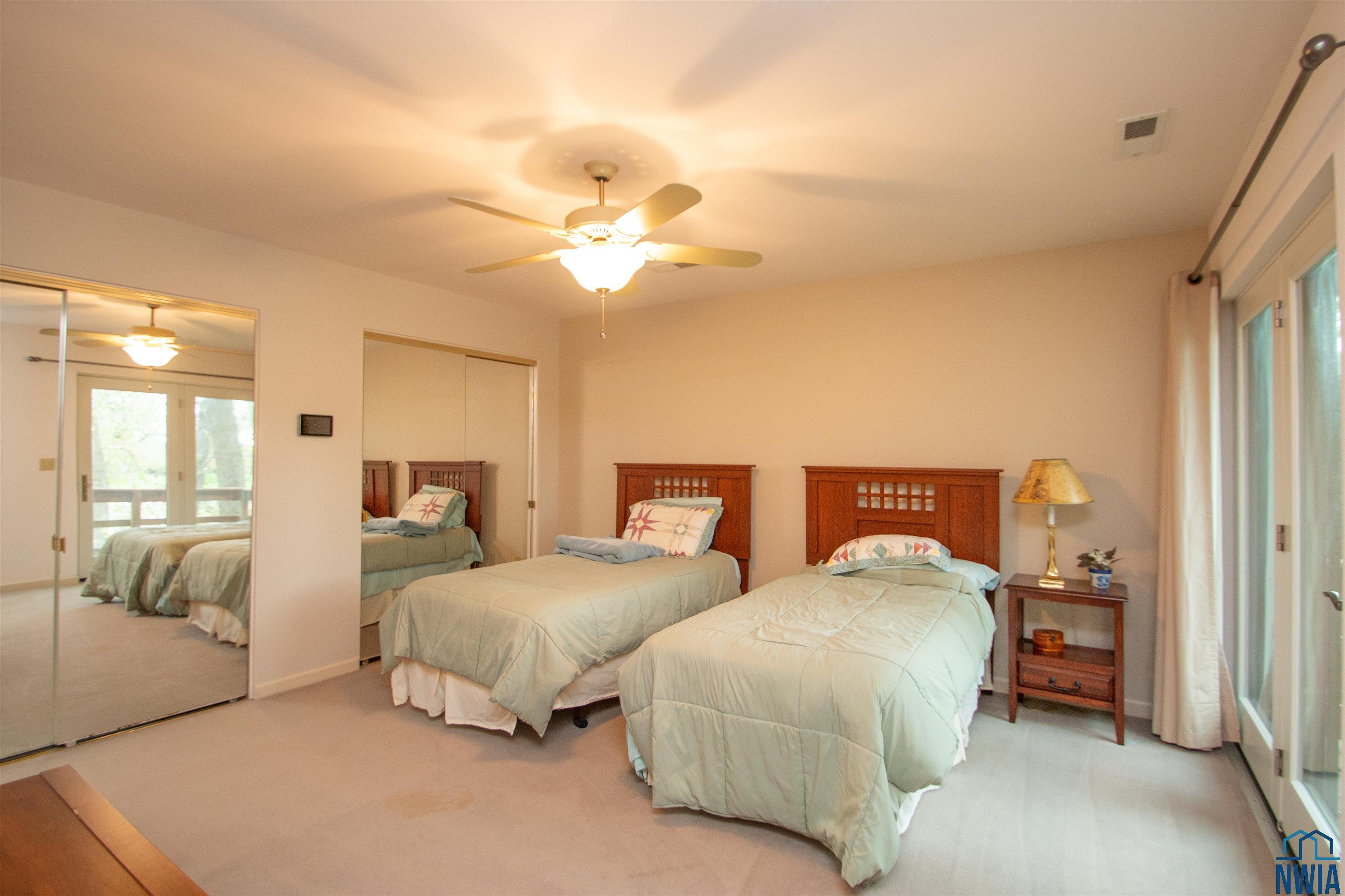 Bedroom | Second | 13 x 13 | carpet, Juliet balcony, pond view, 2 dbl closets |