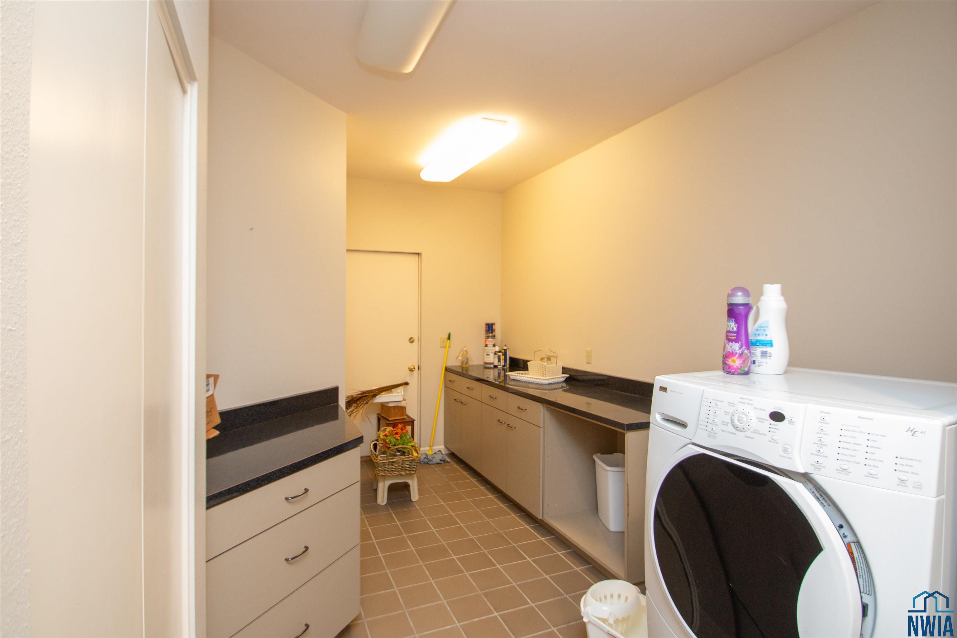 Laundry | Main | 14 x 6 | tile floor, lots of cabs, door to front porch, closet |