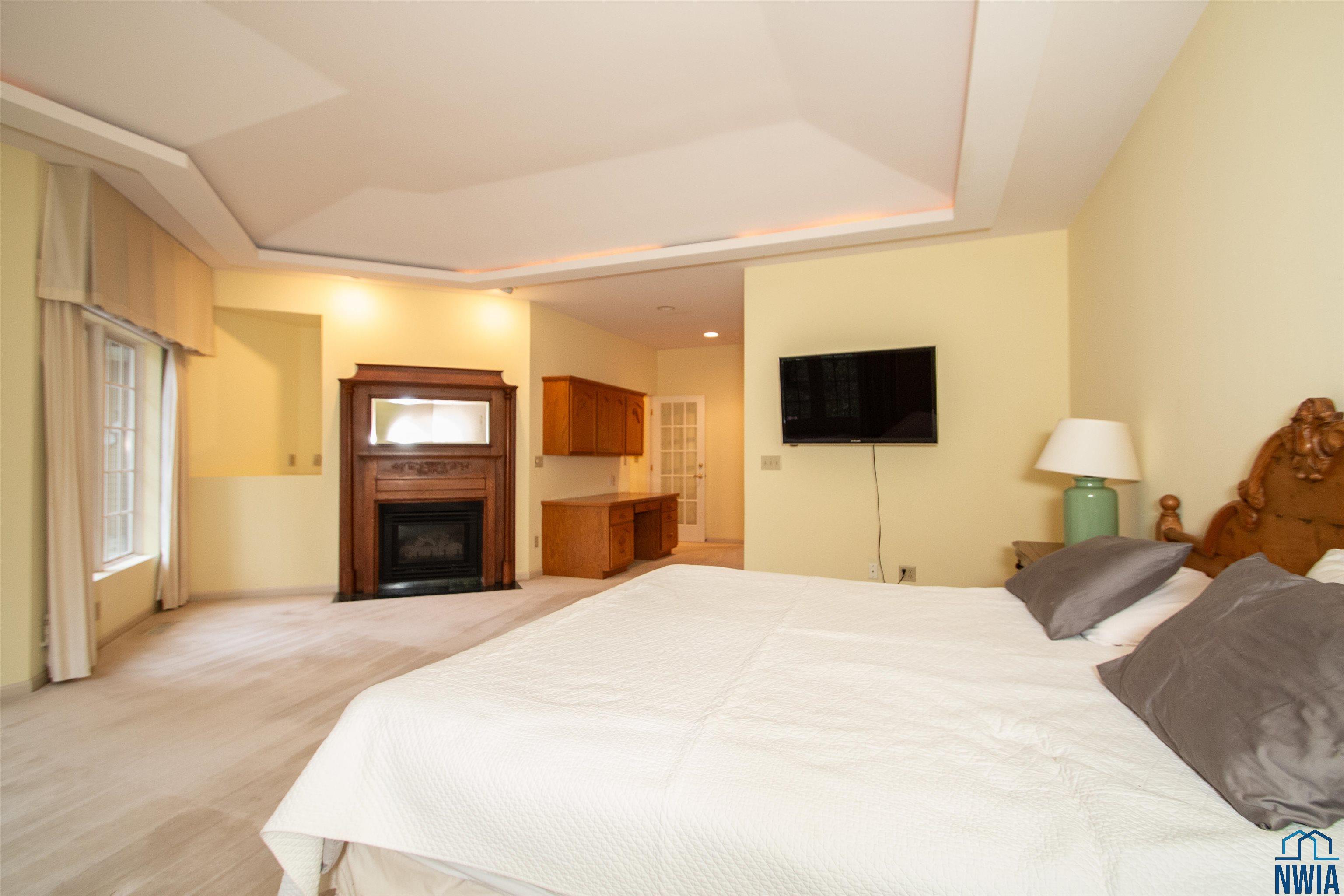 Master | Main | 16 x 16 + 6 x 10 | carpet, door to front, gas fp, desk area, 10x6 WIC |