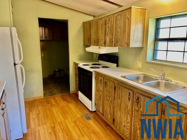 Kitchen | Main | 8.7 by 12.9. | Wood Flooring, Cabinets, Stove, Refrigerator. |