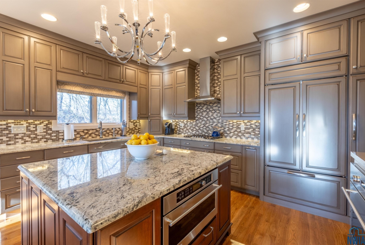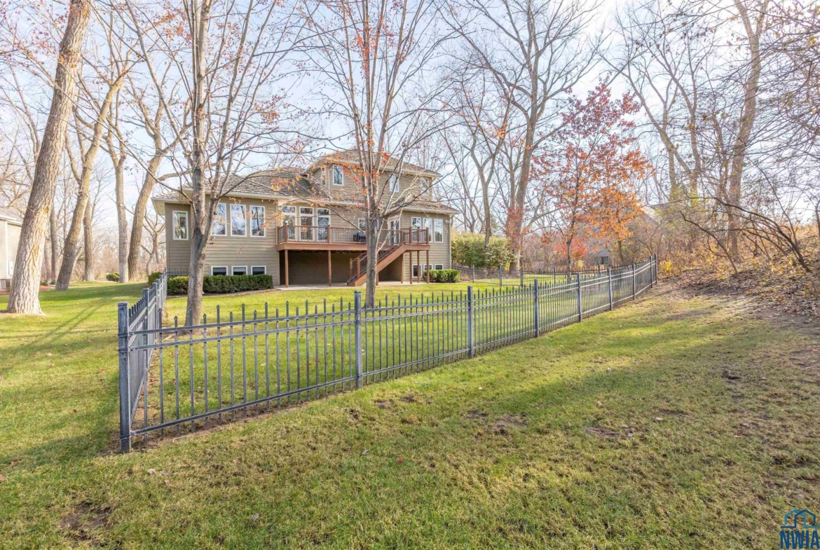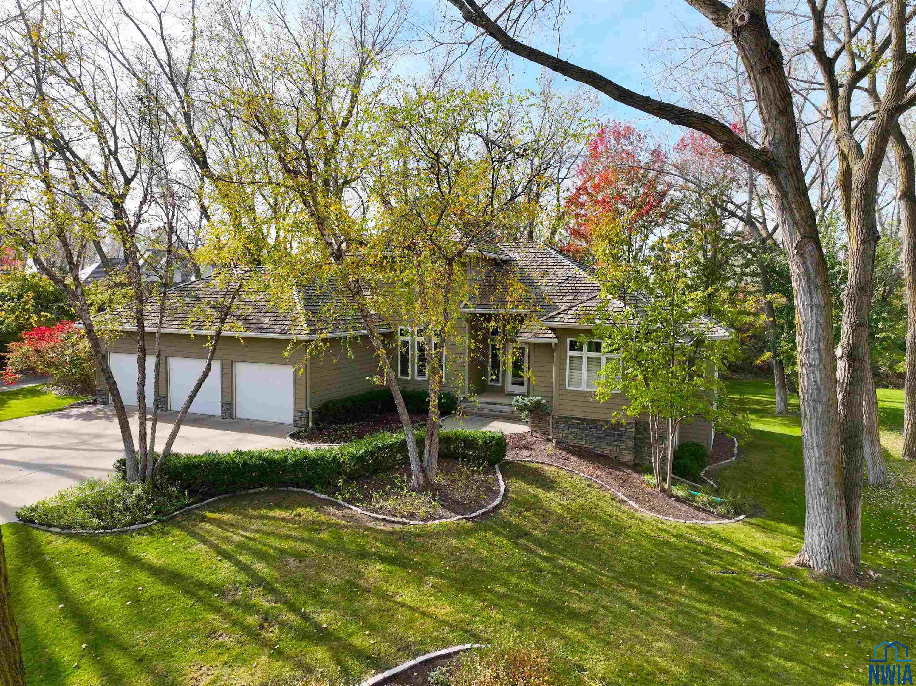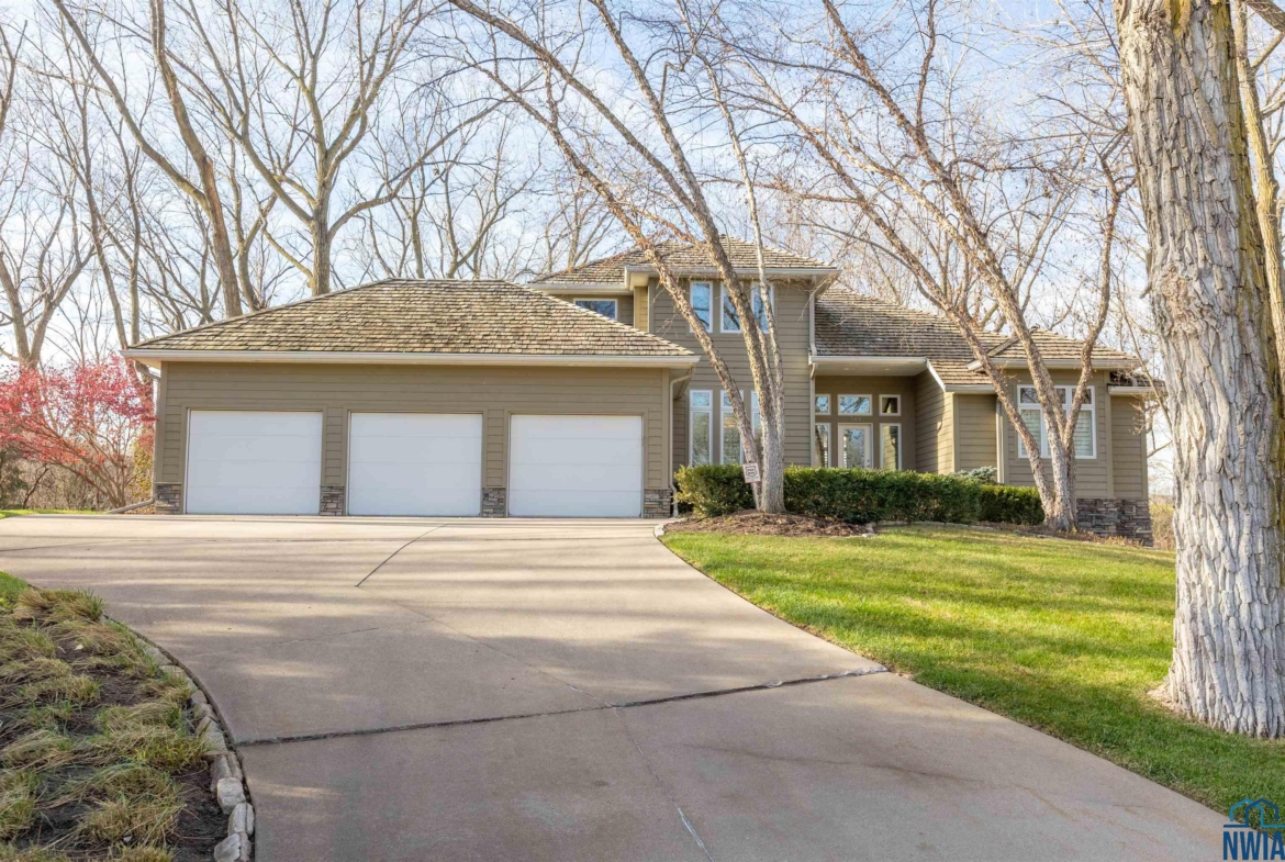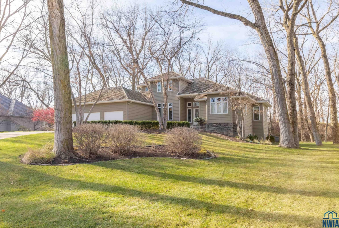 Extraordinary property in the Dakota Dunes Country Club situated on a private half-acre golf course lot. Welcome to this stunning 5-bedroom, 4-bath, 1.5 story home with high end updates throughout the entire property, including a newly finished basement, luxury master suite, and a designer kitchen built for everyday living and entertaining. Step inside to an inviting main level with rich finishes and plenty of natural light. The custom eat-in kitchen showcases double GE monogram ovens, large granite island, sub-zero built in fridge, Bosch gas cooktop, tile backsplash, and high-end custom cabinetry from Grabill. The main level family room is conveniently open to the kitchen and features hardwood floors and a custom majestic gas fireplace. The master suite is sure to impress with an attached 12×12 office space, 2 walk in closets, and a full bath with heated marble floors, walk in tile shower, and dual vanities. Main level also features a formal dining room, formal living room with lighted trey ceilings, updated half bath, and a laundry room with ample cabinet space, quartz tops, sink, and tile floors. On the second level there are 3 spacious bedrooms and a completely updated full bath with dual vanities. The newly finished lower level adds exceptional living space with a stylish wet bar, perfect for hosting guests or relaxing evenings at home. The spacious family room features recessed lighting, surround sound, and a built-in entertainment center. The basement also includes a 5th bedroom with a 12×7 walk in closet, impressive 3/4 bath with heated tile floors and walk in tile shower, and ample storage space. The backyard setting is great for cookouts and entertaining with a new trex deck, tons of privacy, and a spacious fenced yard. The oversized 3-stall garage provides ample storage and plenty of room vehicles, and hobbies. For a complete list of updates see attached document. This exceptional property blends luxury, comfort and a premiere setting so Don’t Delay!
