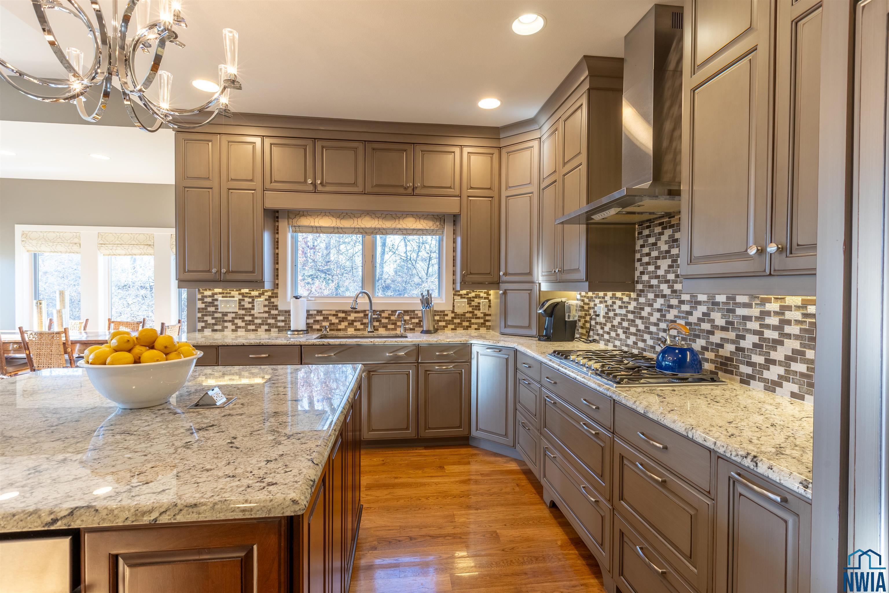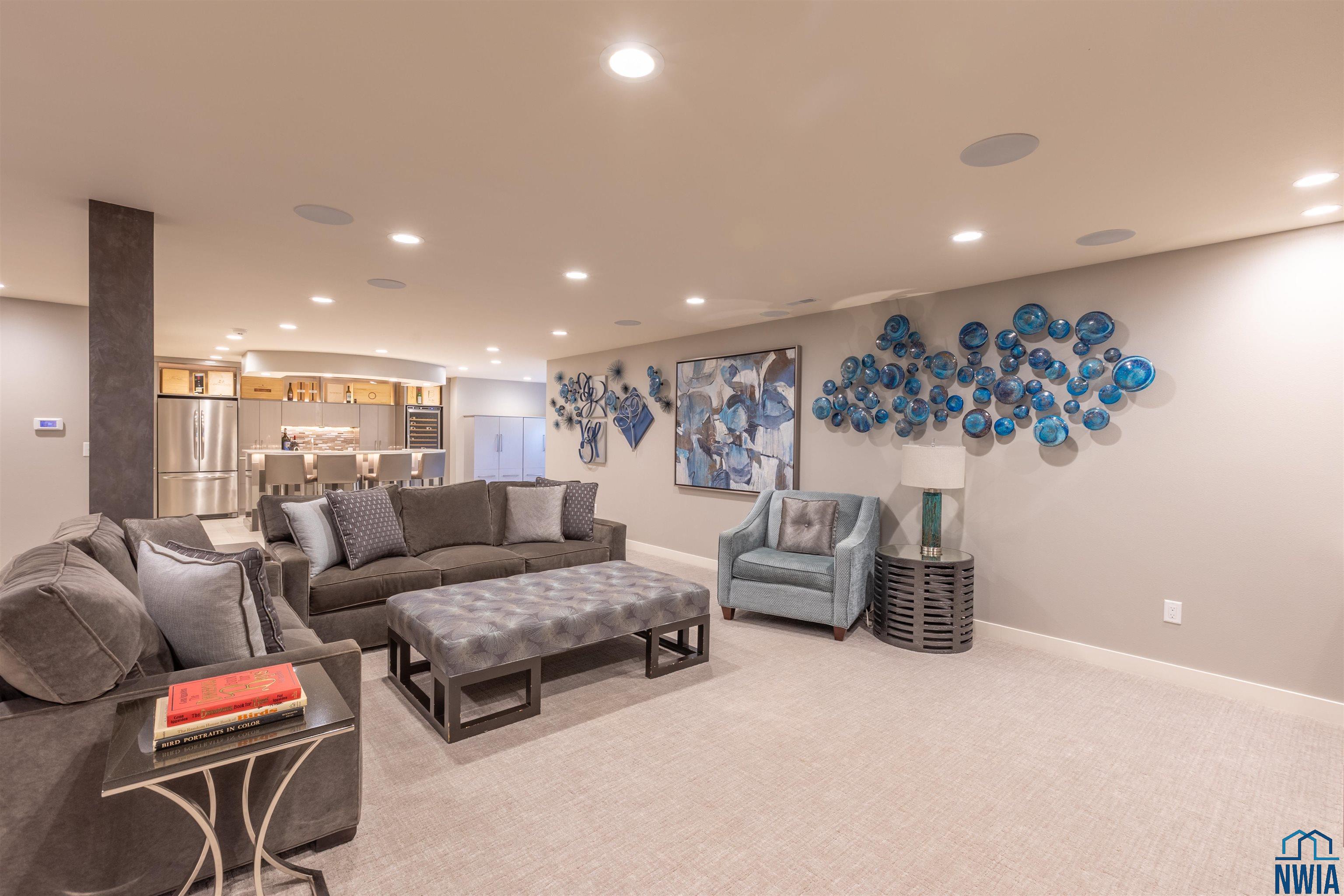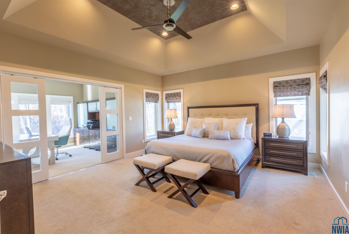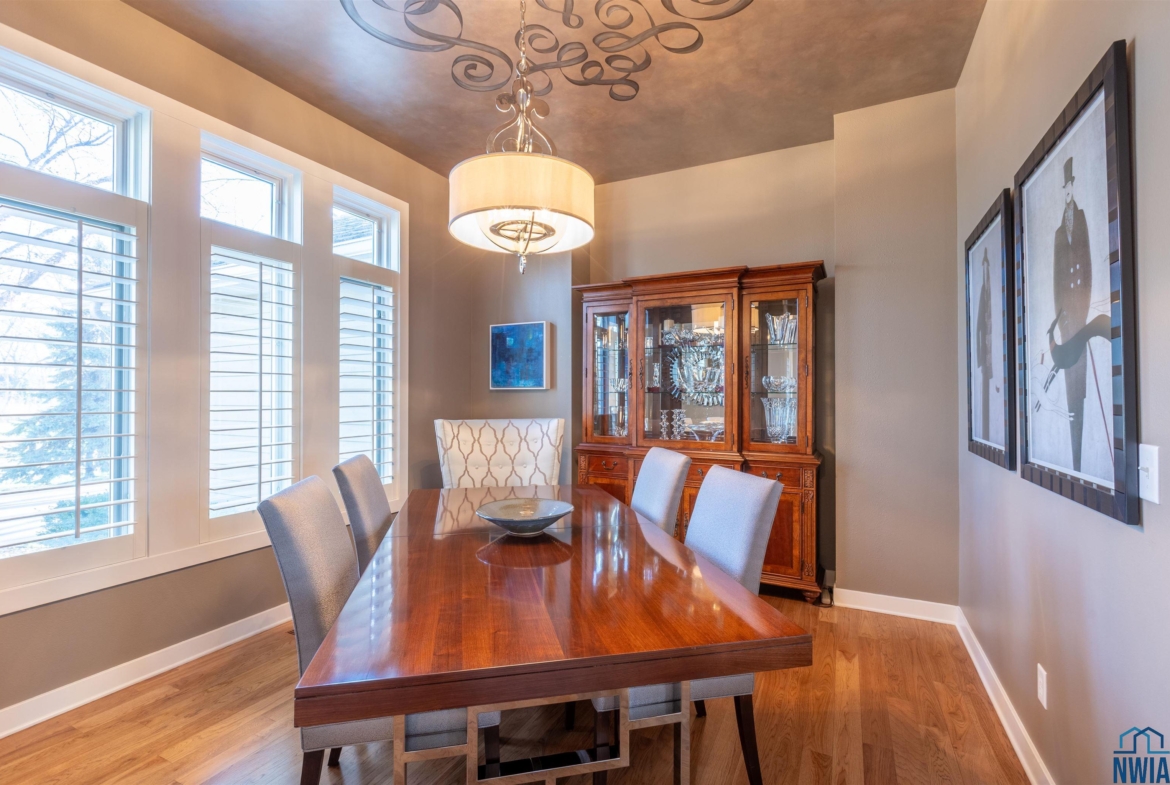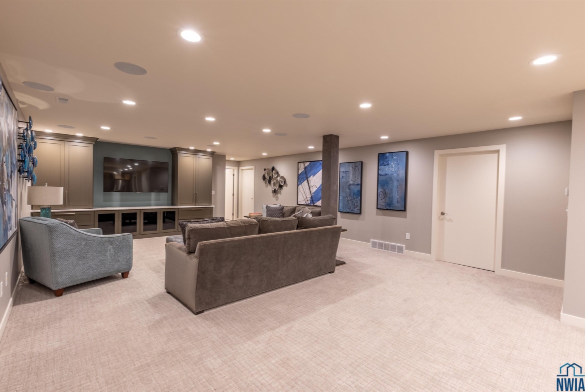 Extraordinary property in the Dakota Dunes Country Club situated on a private half-acre golf course lot. Welcome to this stunning 5-bedroom, 4-bath, 1.5 story home with high end updates throughout the entire property, including a newly finished basement, luxury master suite, and a designer kitchen built for everyday living and entertaining. Step inside to an inviting main level with rich finishes and plenty of natural light. The custom eat-in kitchen showcases double GE monogram ovens, large granite island, sub-zero built in fridge, Bosch gas cooktop, tile backsplash, and high-end custom cabinetry from Grabill. The main level family room is conveniently open to the kitchen and features hardwood floors and a custom majestic gas fireplace. The master suite is sure to impress with an attached 12×12 office space, 2 walk in closets, and a full bath with heated marble floors, walk in tile shower, and dual vanities. Main level also features a formal dining room, formal living room with lighted trey ceilings, updated half bath, and a laundry room with ample cabinet space, quartz tops, sink, and tile floors. On the second level there are 3 spacious bedrooms and a completely updated full bath with dual vanities. The newly finished lower level adds exceptional living space with a stylish wet bar, perfect for hosting guests or relaxing evenings at home. The spacious family room features recessed lighting, surround sound, and a built-in entertainment center. The basement also includes a 5th bedroom with a 12×7 walk in closet, impressive 3/4 bath with heated tile floors and walk in tile shower, and ample storage space. The backyard setting is great for cookouts and entertaining with a new trex deck, tons of privacy, and a spacious fenced yard. The oversized 3-stall garage provides ample storage and plenty of room vehicles, and hobbies. For a complete list of updates see attached document. This exceptional property blends luxury, comfort and a premiere setting so Don’t Delay!