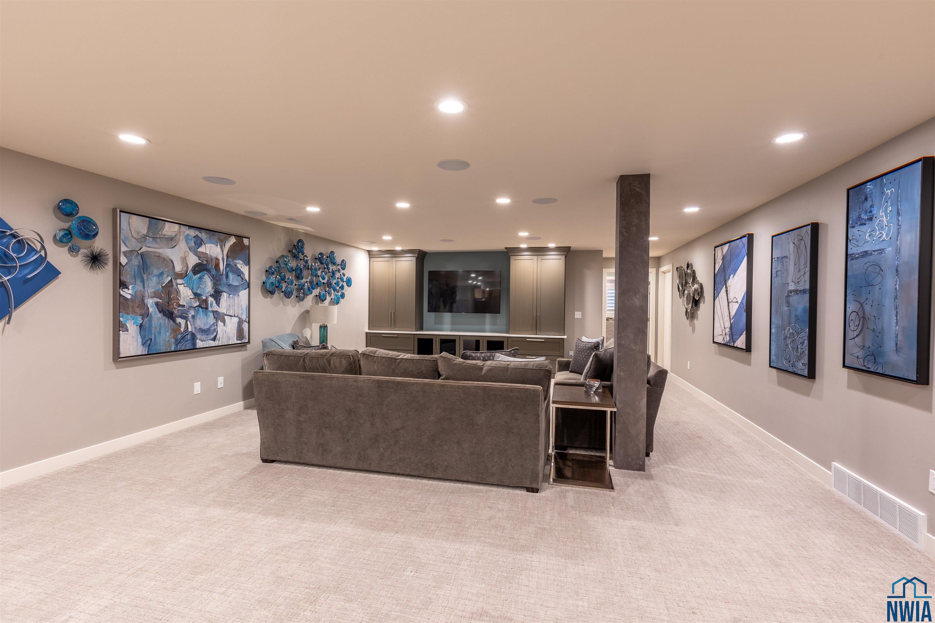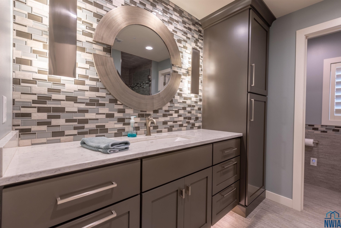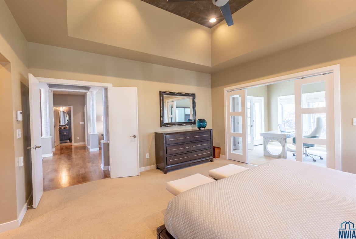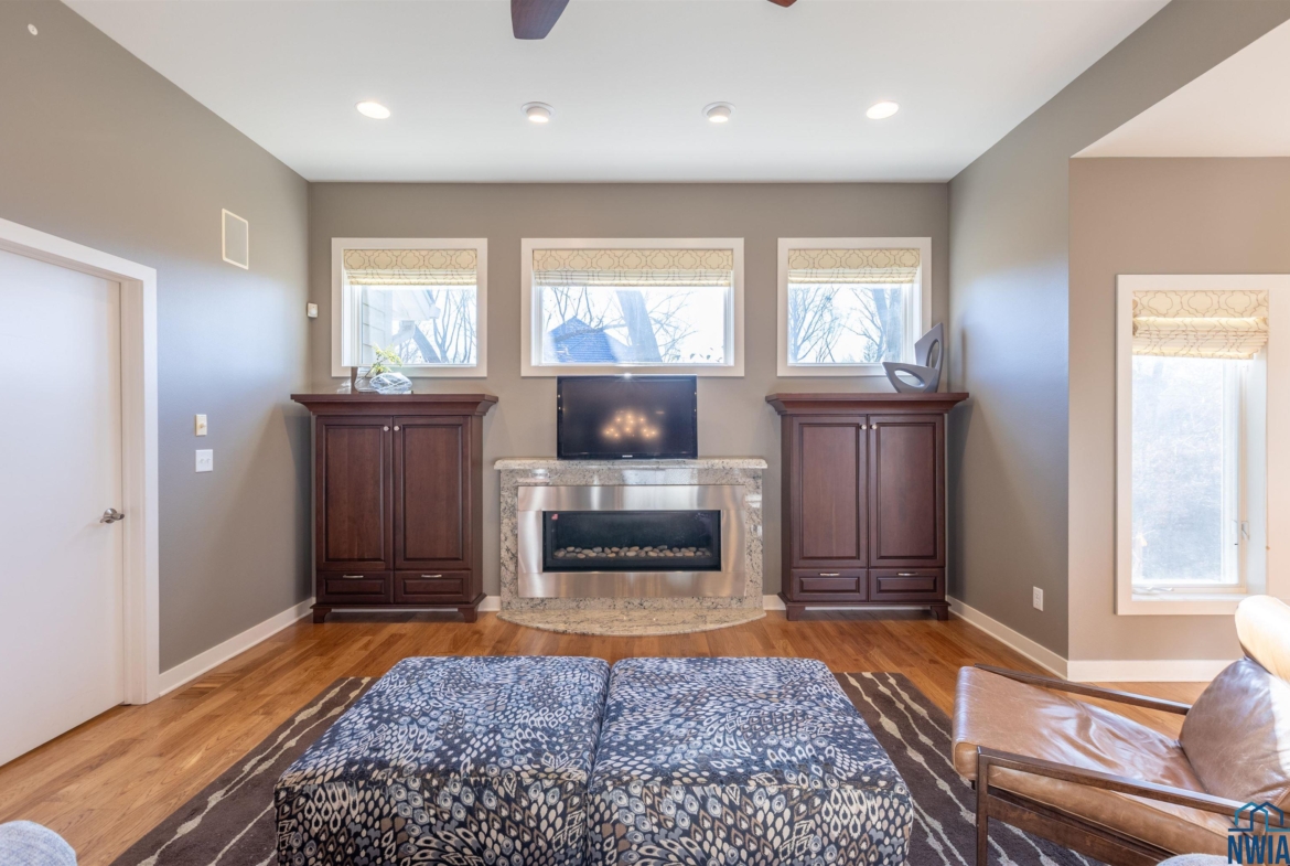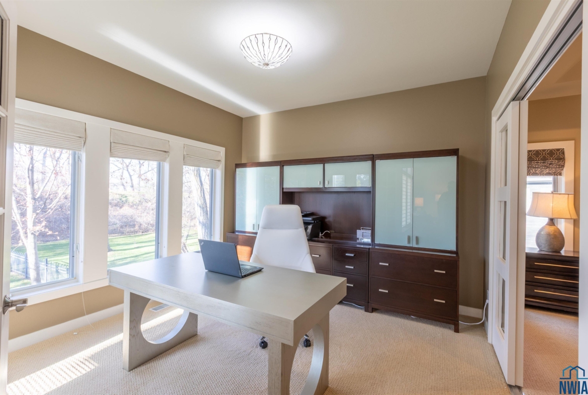 Extraordinary property in the Dakota Dunes Country Club situated on a private half-acre golf course lot. Welcome to this stunning 5-bedroom, 4-bath, 1.5 story home with high end updates throughout the entire property, including a newly finished basement, luxury master suite, and a designer kitchen built for everyday living and entertaining. Step inside to an inviting main level with rich finishes and plenty of natural light. The custom eat-in kitchen showcases double GE monogram ovens, large granite island, sub-zero built in fridge, Bosch gas cooktop, tile backsplash, and high-end custom cabinetry from Grabill. The main level family room is conveniently open to the kitchen and features hardwood floors and a custom majestic gas fireplace. The master suite is sure to impress with an attached 12×12 office space, 2 walk in closets, and a full bath with heated marble floors, walk in tile shower, and dual vanities. Main level also features a formal dining room, formal living room with lighted trey ceilings, updated half bath, and a laundry room with ample cabinet space, quartz tops, sink, and tile floors. On the second level there are 3 spacious bedrooms and a completely updated full bath with dual vanities. The newly finished lower level adds exceptional living space with a stylish wet bar, perfect for hosting guests or relaxing evenings at home. The spacious family room features recessed lighting, surround sound, and a built-in entertainment center. The basement also includes a 5th bedroom with a 12×7 walk in closet, impressive 3/4 bath with heated tile floors and walk in tile shower, and ample storage space. The backyard setting is great for cookouts and entertaining with a new trex deck, tons of privacy, and a spacious fenced yard. The oversized 3-stall garage provides ample storage and plenty of room vehicles, and hobbies. For a complete list of updates see attached document. This exceptional property blends luxury, comfort and a premiere setting so Don’t Delay!