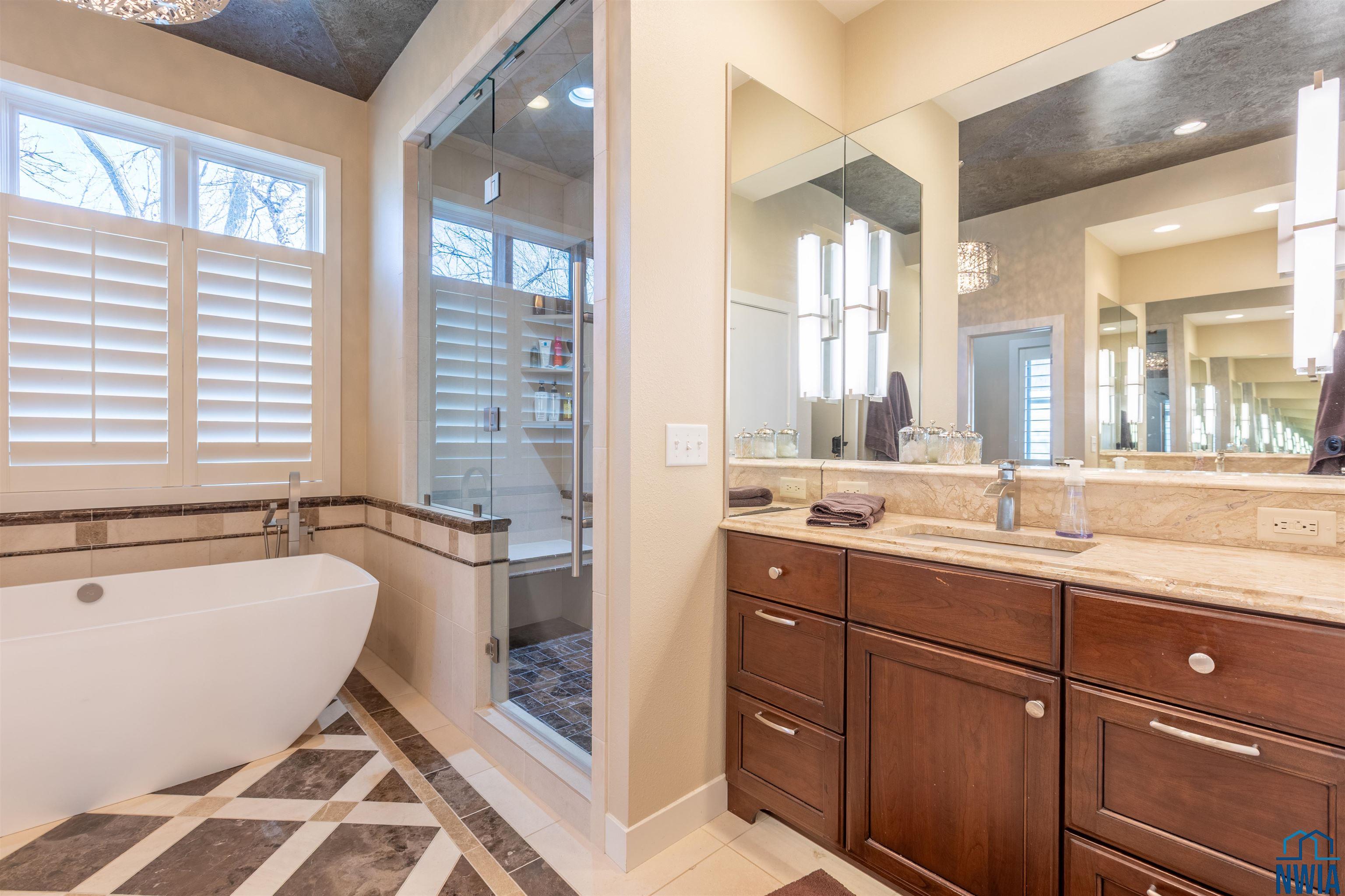 Full BathMain15x12heated marble floors, walk in tile shower, dual vanities