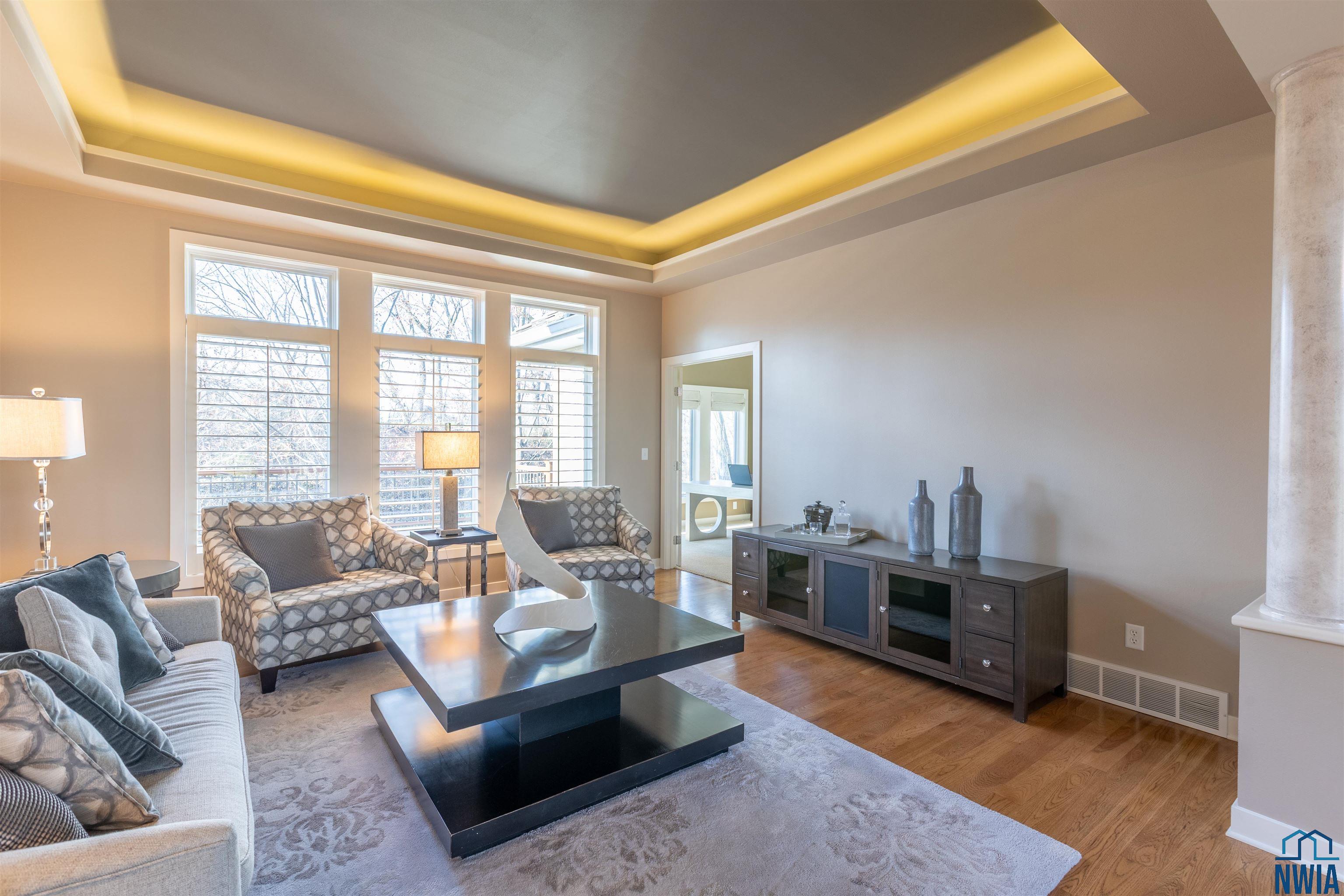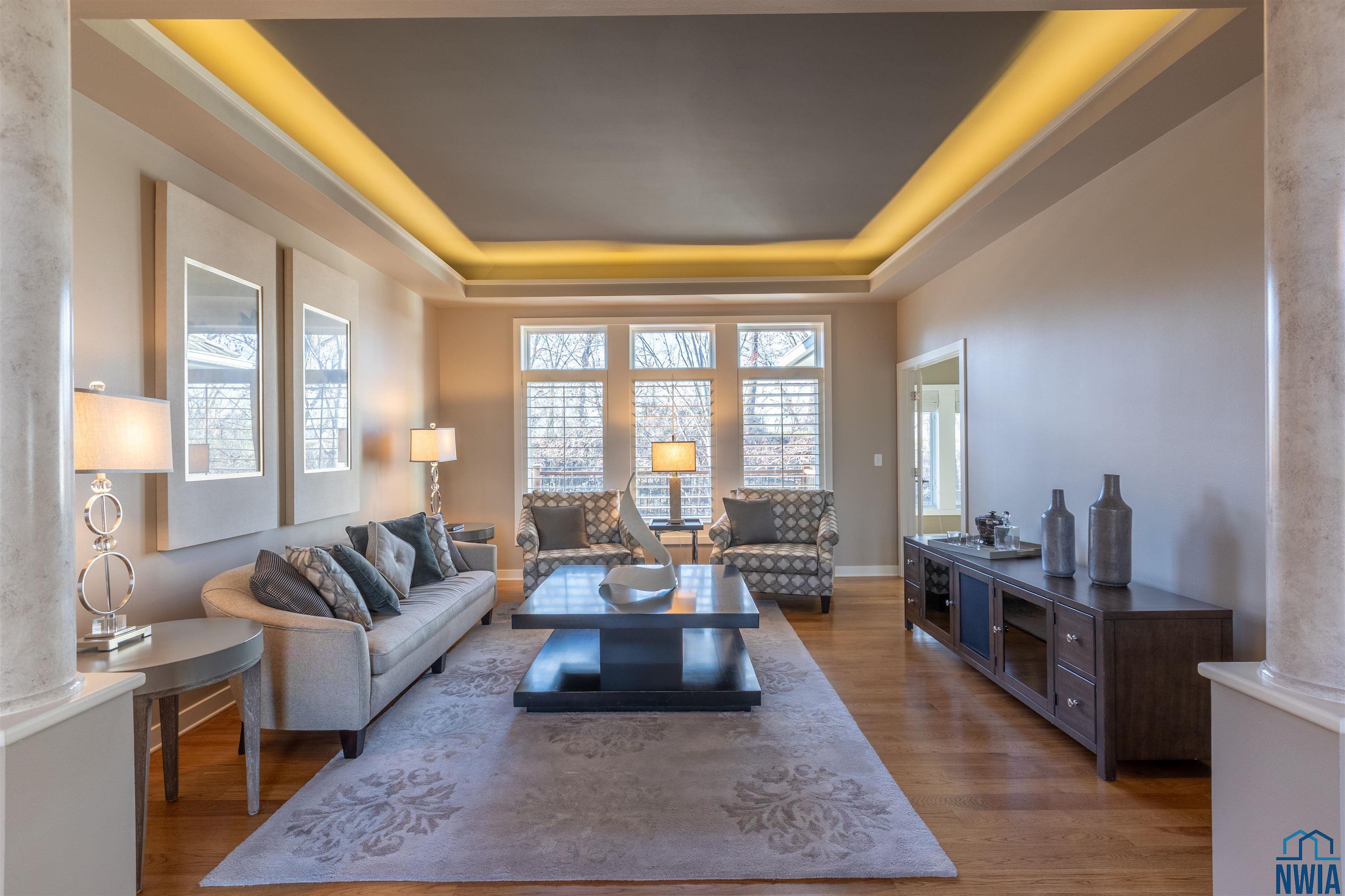 LivingMain20x15formal living room with hardwood floors and trey ceilings