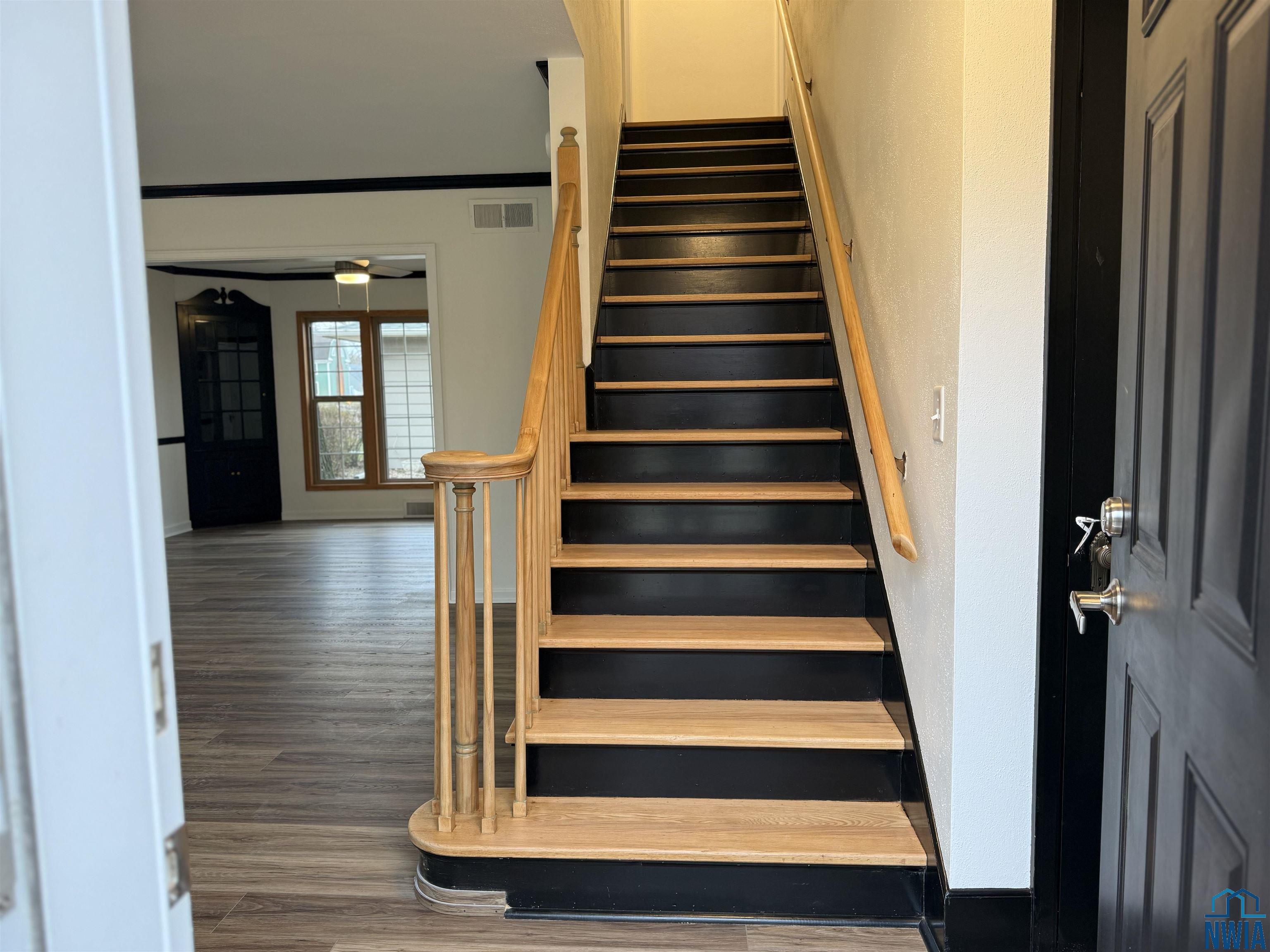 Welcome to this charming, renovated 1950’s home located on the corner of Main Street and Yale Street! The meticulous detailing from the floor restoration, professional painting and interior remodel of the kitchen and bathrooms has this home ready for you to move in and enjoy the historical area of Vermillion! The windows have been updated, as well as the furnace being updated in 2009. As you enter the home, the oak staircase is centrally located and to its left is a spacious living room featuring hardwood floors that lead you into the dining area and newly remodeled kitchen. There is a main floor bedroom and a half bath also on the main floor. The second floor has two very large bedrooms with hard wood floors and walk in closets. A fully remodeled full bathroom completes this level. Ample amounts of storage throughout the home. Enjoy the summers in the 3-season porch and if you need extra space for your workshop or storing other vehicles, the detached 2 stall garage is an added benefit.