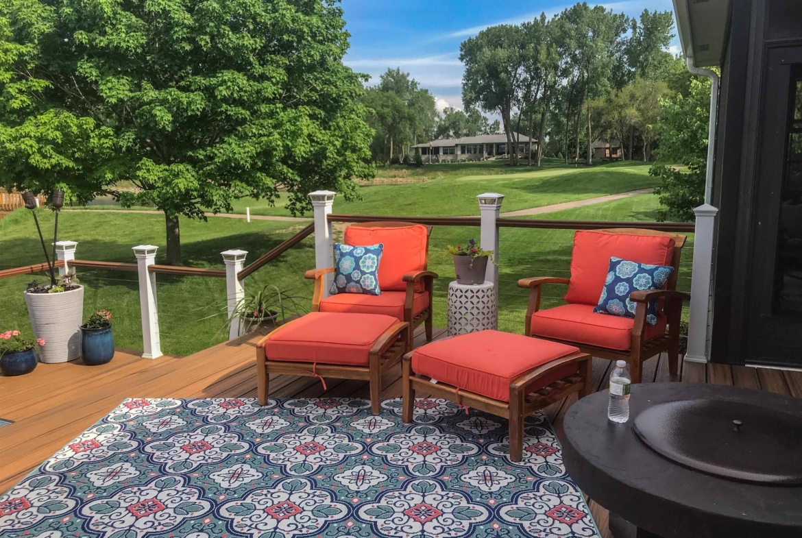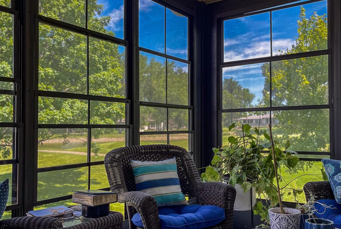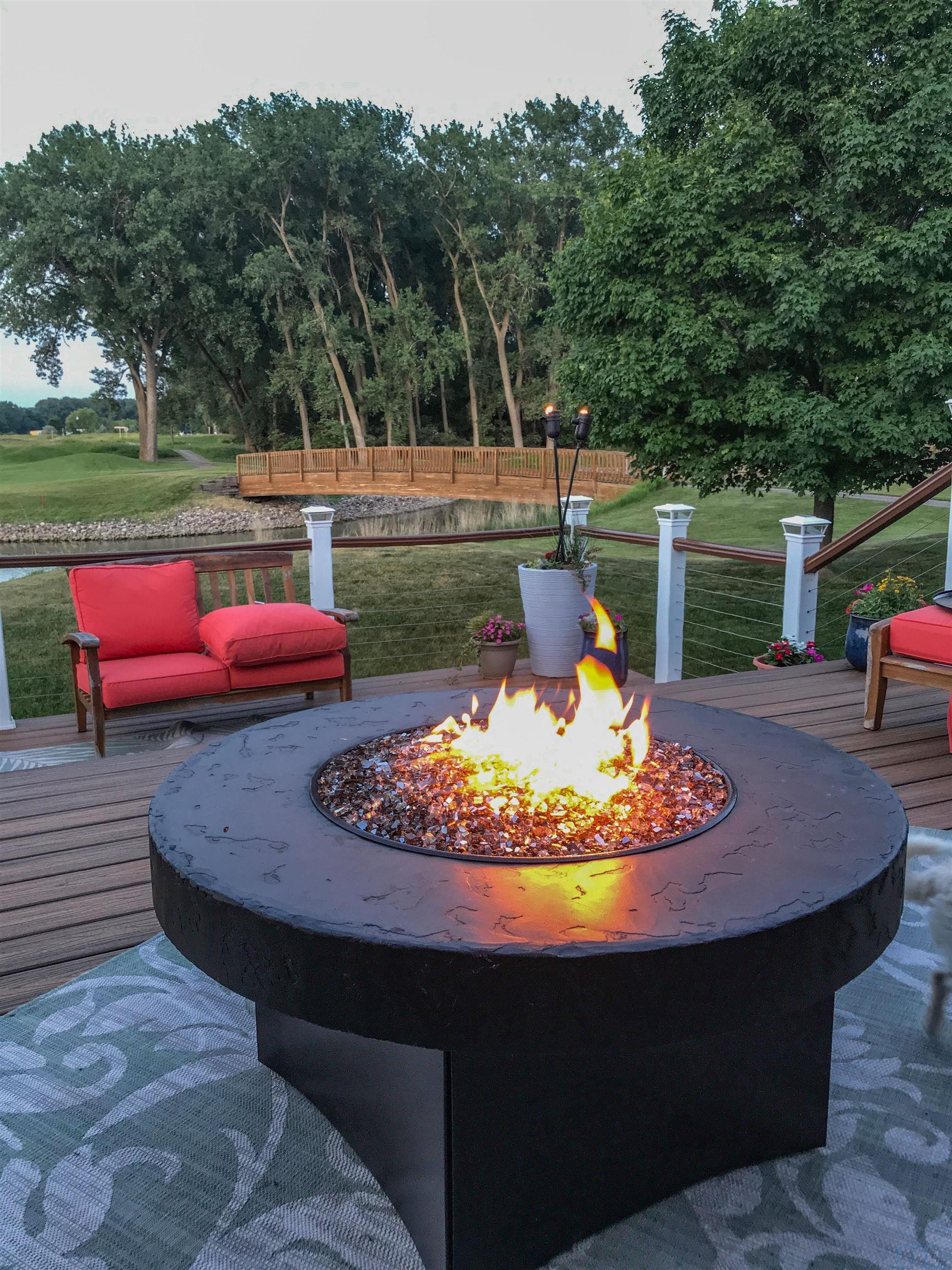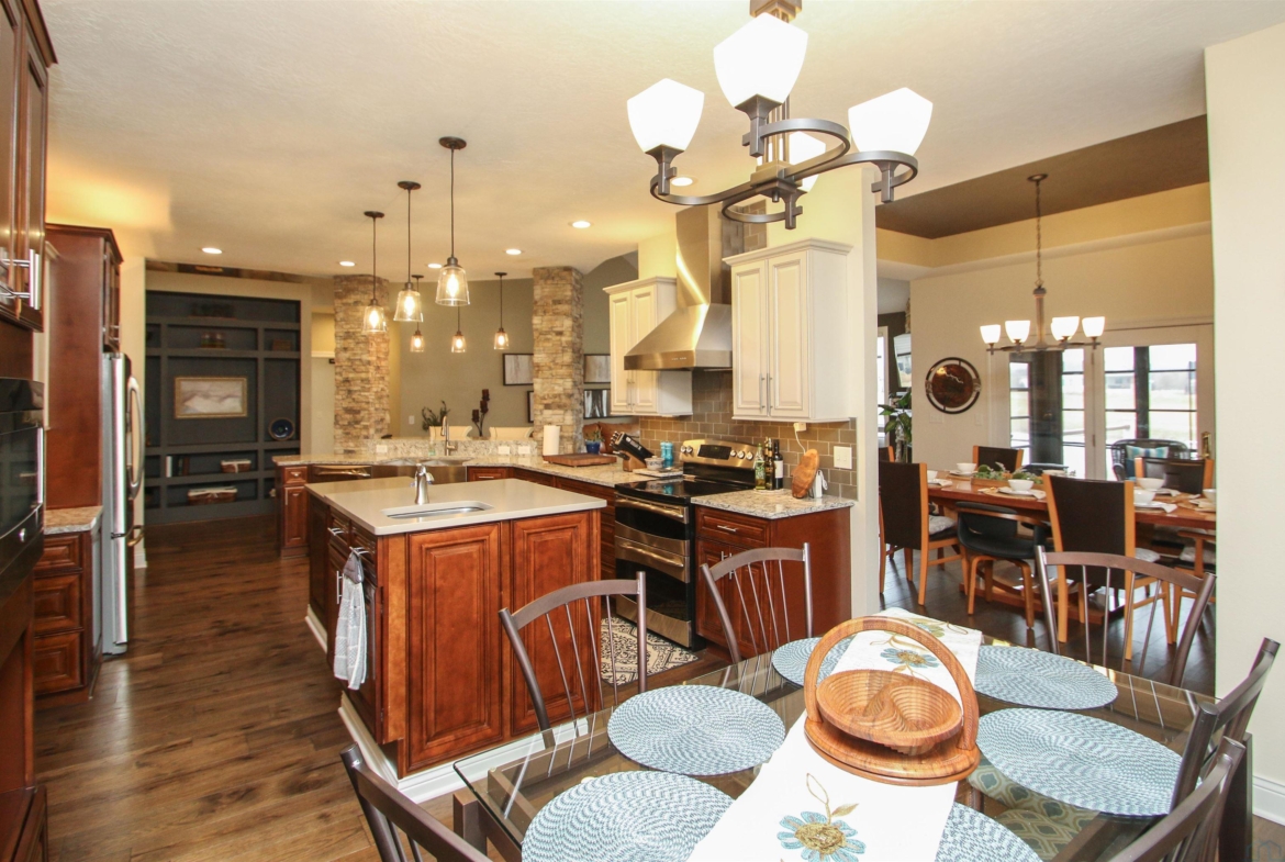 Tucked away at the end of a cul de sac with bridge and golf course views is this classy updated home with 3 bedrooms, 3 bathrooms and a 3 car garage. First impression: New garage doors, curbing(2018) & stained glass panel above the front door. Foyer features 16 ft ceiling, coat closet New decor shelves & chandelier. Engineered floor in foyer, den, living room, dining room, kitchen and halls. Den has closet with antique door. Great views of the signature # 5 hole & bridge from LR with vaulted ceiling. New gas FP with stacked stone, and decor shelves. Formal dining room has pop up ceiling and door to Screen Builders 3 season room with carpet, CF, electric heater, 2 screened walls with door to NEW 2 level composite deck with cable rail system & firepit. Great places to relax or entertain. Showstopper NEW kitchen features RTA custom built light and dark cabinets, solid surface counters, island with quartz counter, over & under cab lighting, SS double sink, eat in area, counter seating wet bar area, bar frig, pull out drawers. & many custom features. Convenient drop zone off garage door and an antique door on laundry room with hex tile floor and cabs w sink. Primary suite is a retreat with carpet, pop up ceiling and bay window. Custom features in the bathroom: NEW floating dbl vanity, full tile wet room with shower and soaking tub, toilet room with pretty light, heated floor, and skylight. 7×6 WIC and 3×4 cedar closet both with antique sliding doors. Completing main floor are 2 bedrooms each with carpet, dbl closets, CF and lots of windows and a NEW full bathroom with hexagon tile floor, warmer lights, tub/shower combo and skylight. Lower level has a family room with carpet and daylight windows, (2 person infrared sauna included) a flex room which could be an office/craft/workout room and a 3/4 bathroom with heated tile floor & dbl closet. Updates: 2017: Shingles, bay window in primary. New HVAC 2015 New kitchen 2016-17. New main bath: 2026.
