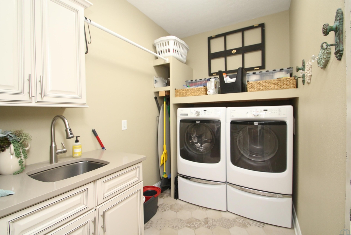 | Laundry | Main | 6 x 9 | antique sliding door, hex tile floor, cab w/ sink |