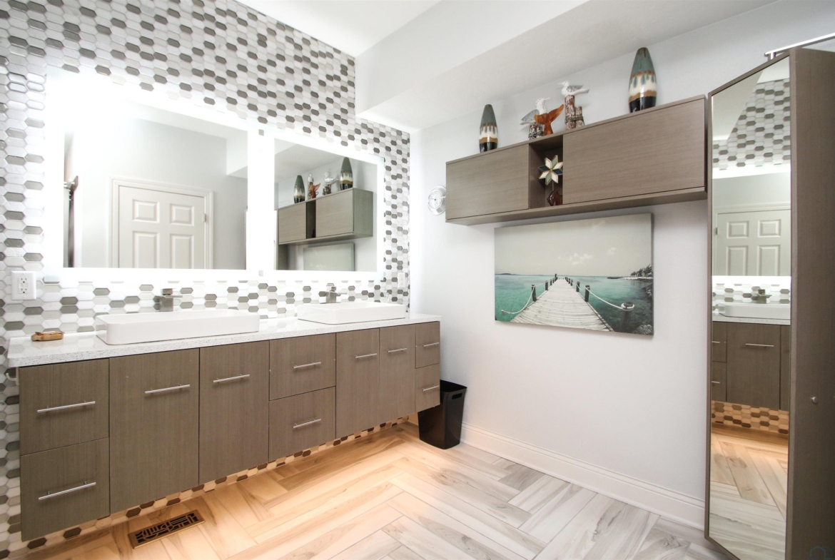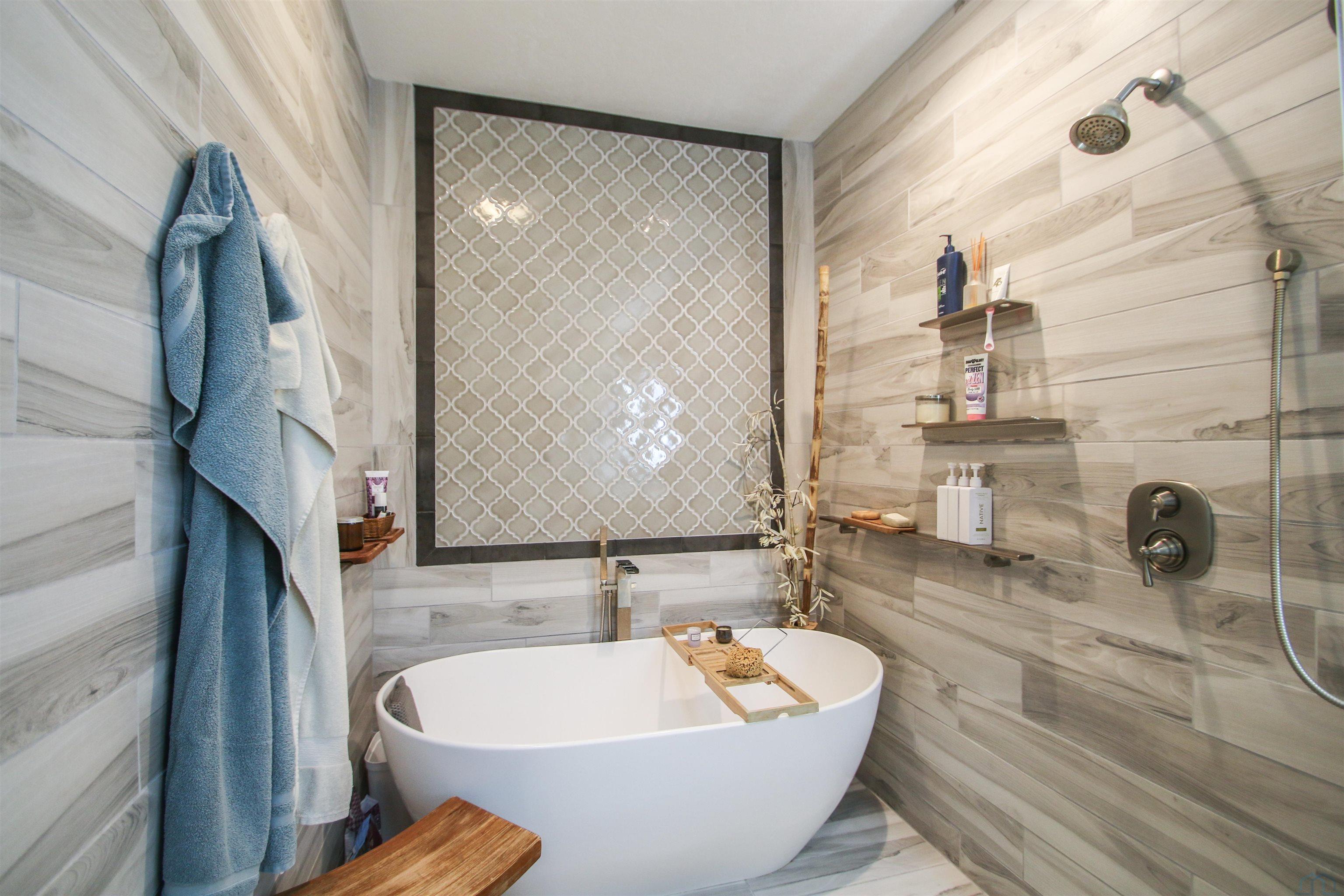 | Full Bath | Main | 15 x 8 + 3 x 4 | floating dbl vanity, tiled wet room, heated floor, skylight |