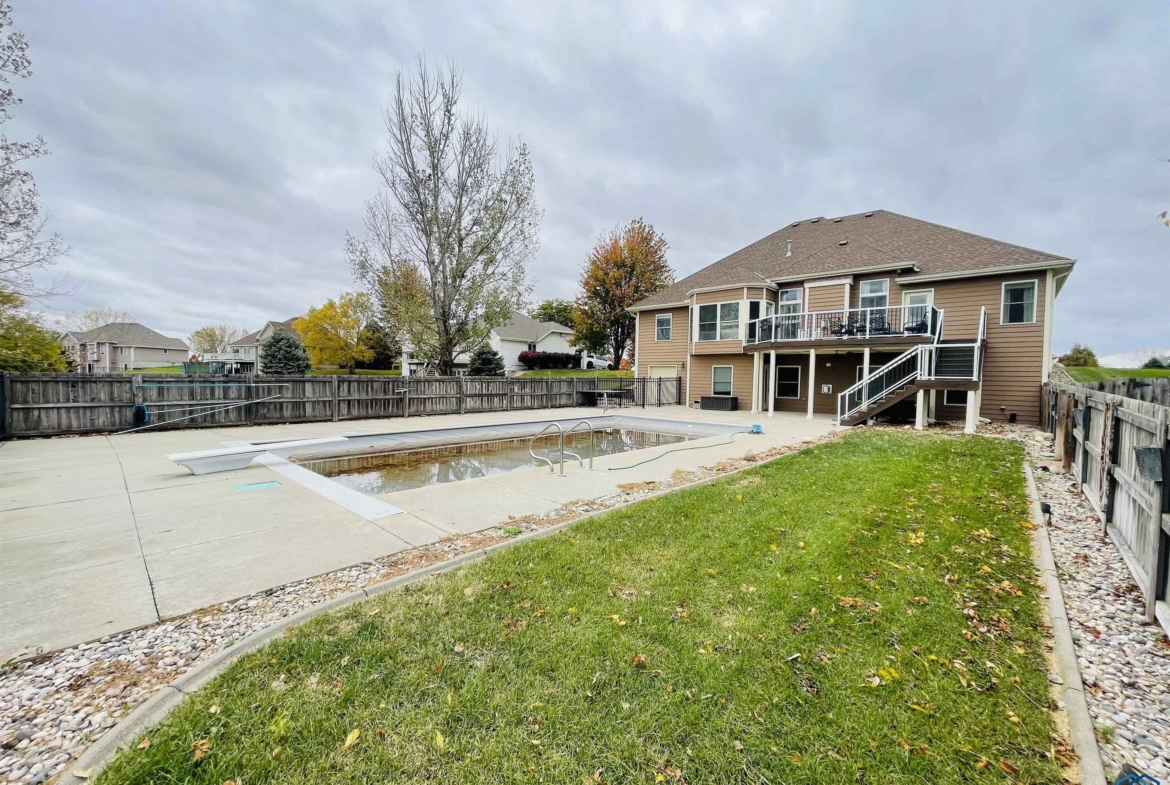 Beautiful ranch style house located in the quiet and private Wynstone neighborhood. This property sits on a massive lot with multiple mature trees in the backyard providing ample privacy and shade. The yard also features an in-ground pool that is fenced in and a bonus garage stemming off of the back side of the house that is ideal for storing outdoor equipment. The composite deck overlooks the pool and shows peaceful views of the South side of the home. When you enter the house after walking past the graciously sized and covered front porch you will notice all of the details that have been put into this property. Hardwood floors and 12 foot ceilings cover the main floor giving the house a “grand” feel. The formal dining room is steps away from the foyer, and it opens up to the living room that’s complimented by a tiled gas fireplace, transom windows, and floating shelving. The kitchen has been recently updated and presents granite countertops, a tiled backsplash, SS appliances, an island, and an additional eating area with a door that leads to the deck. The master bedroom boasts a tray ceiling and it’s own separate entrance to the deck, and the breathtaking master bathroom offers a tiled shower with multiple niches, a double vanity with granite countertops, a separate soaker tub, and a separate stool room. The other side of the main floor comes with two guest bedrooms with double closets, a full bathroom, and the laundry room that includes an additional utility sink and cabinet space. The walkout basement is wide open, and the family room reveals a floor to ceiling stone fireplace. There’s another bedroom and a non-conforming bedroom in the basement with double closets, and there’s a bonus flex room that is currently being used as a gym. This home really has it all!