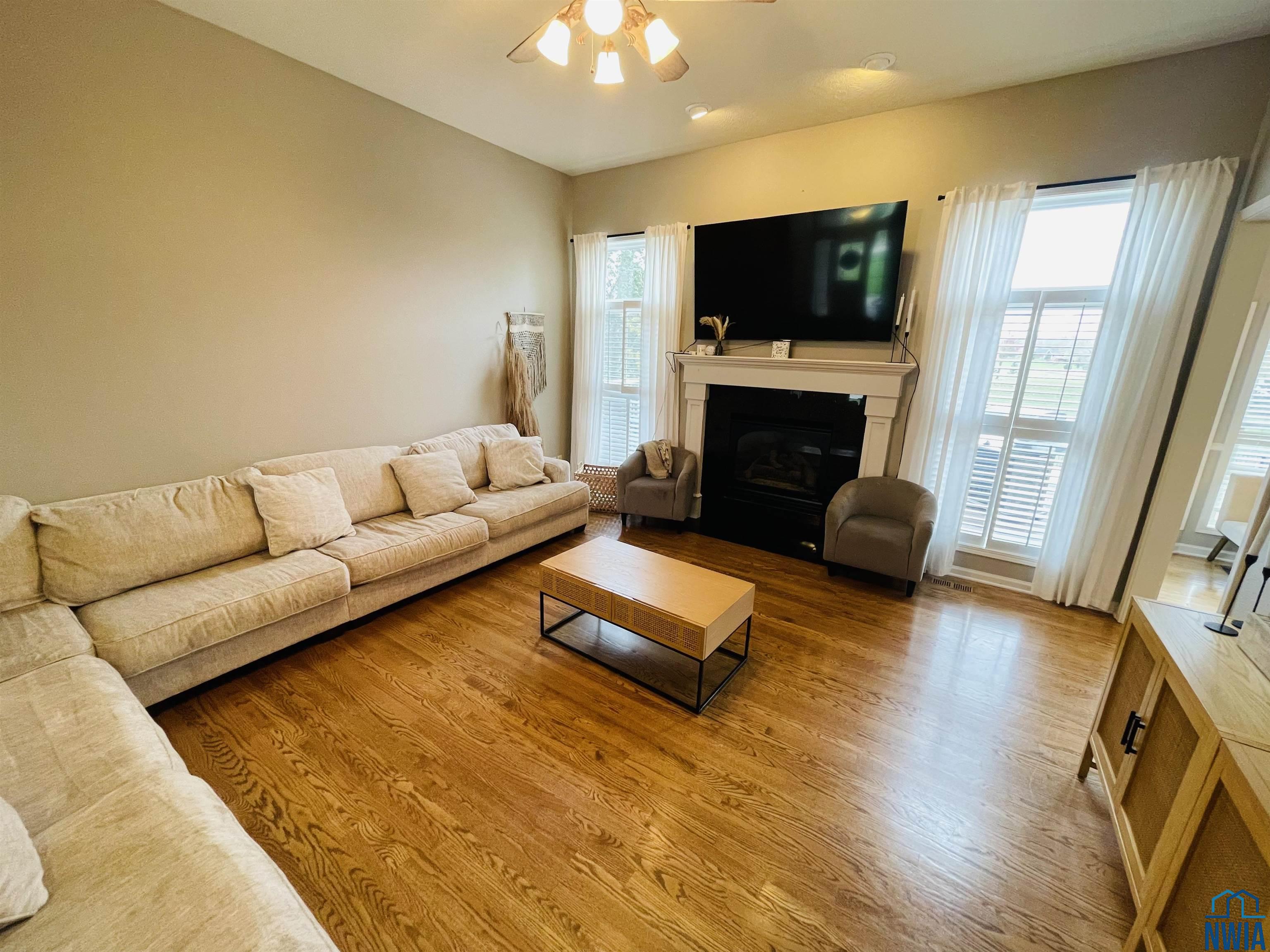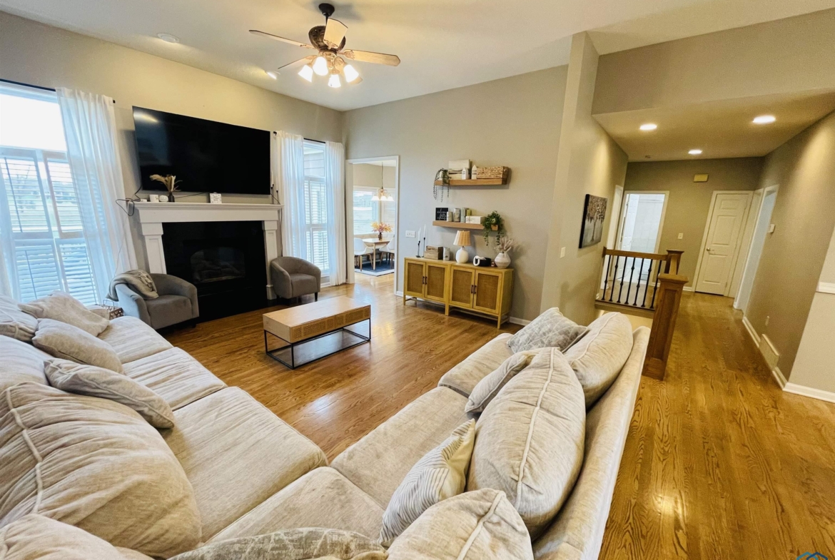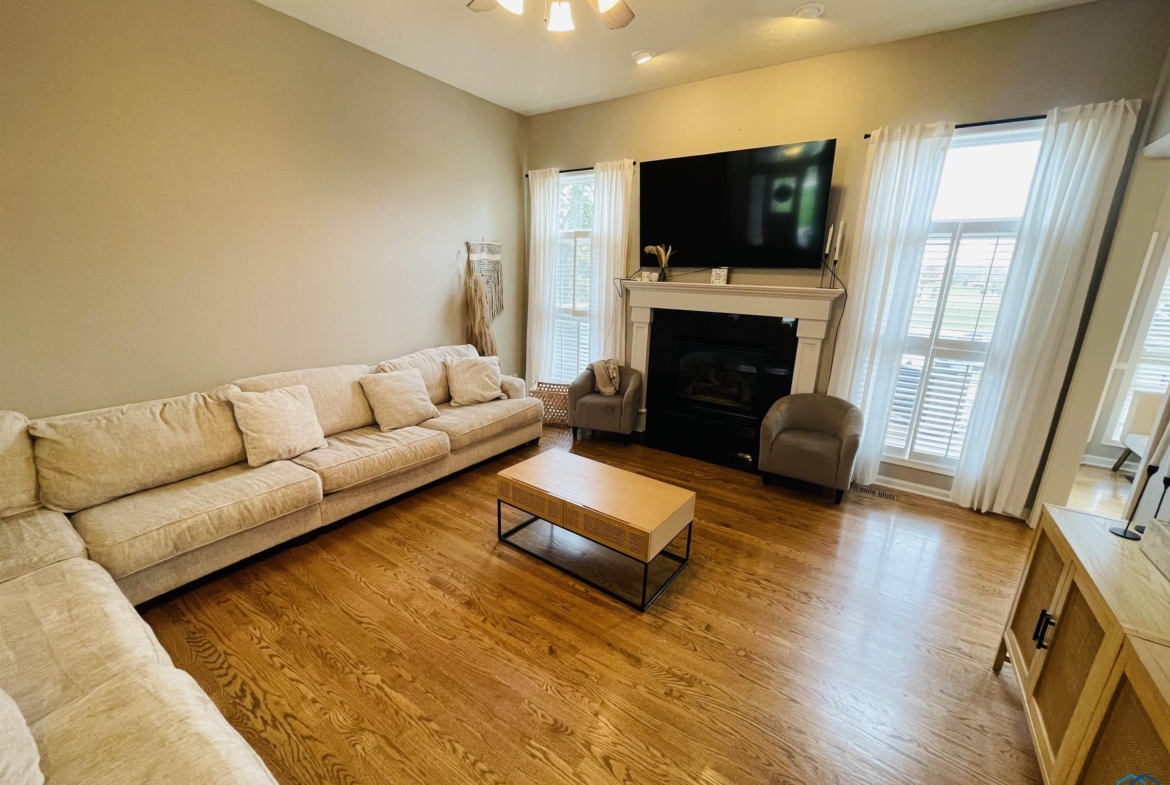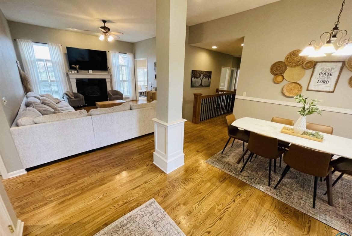 | Living | Main | 17x16 | Hardwood floors, tiled gas fireplace, floating shelves |