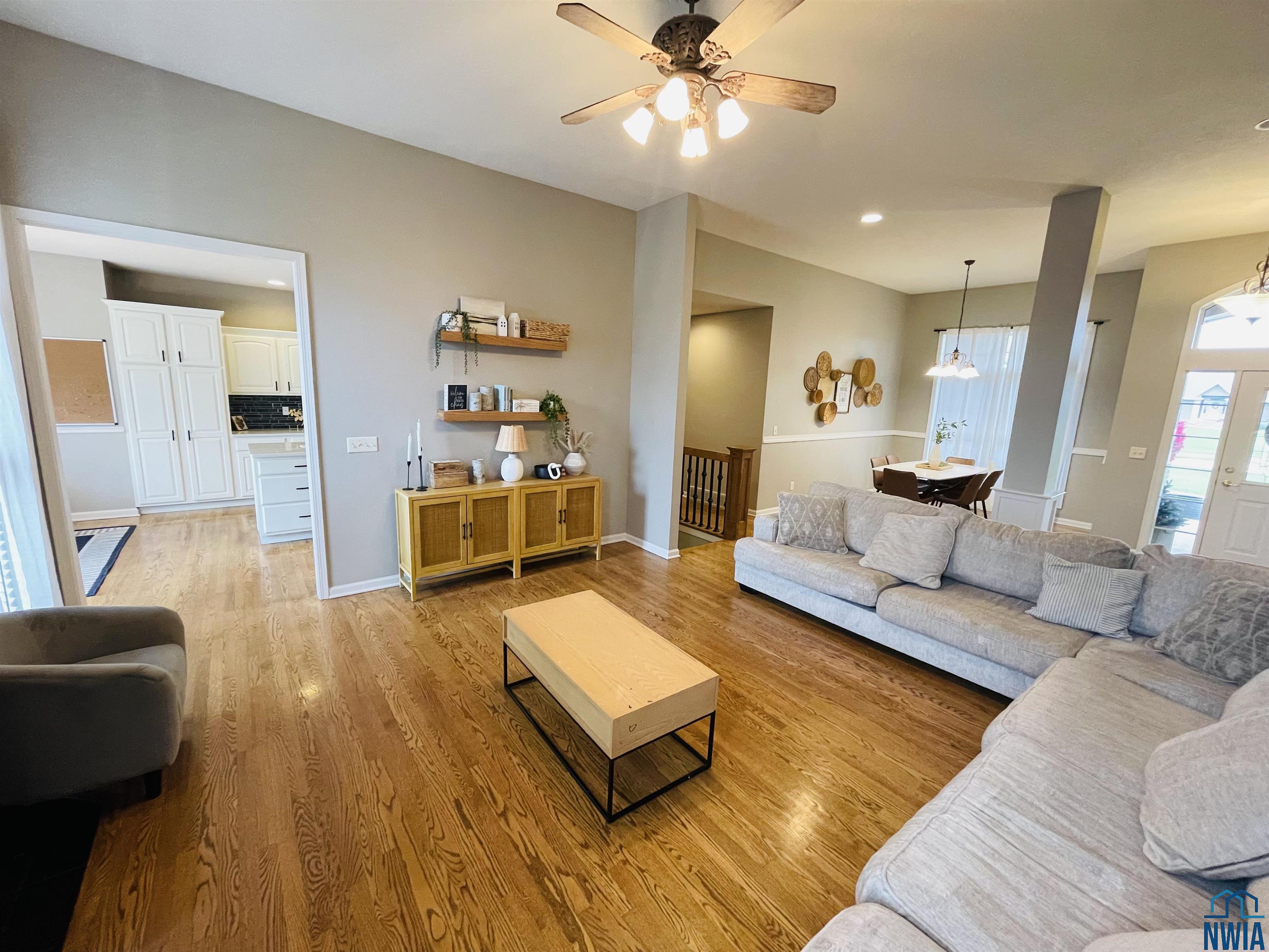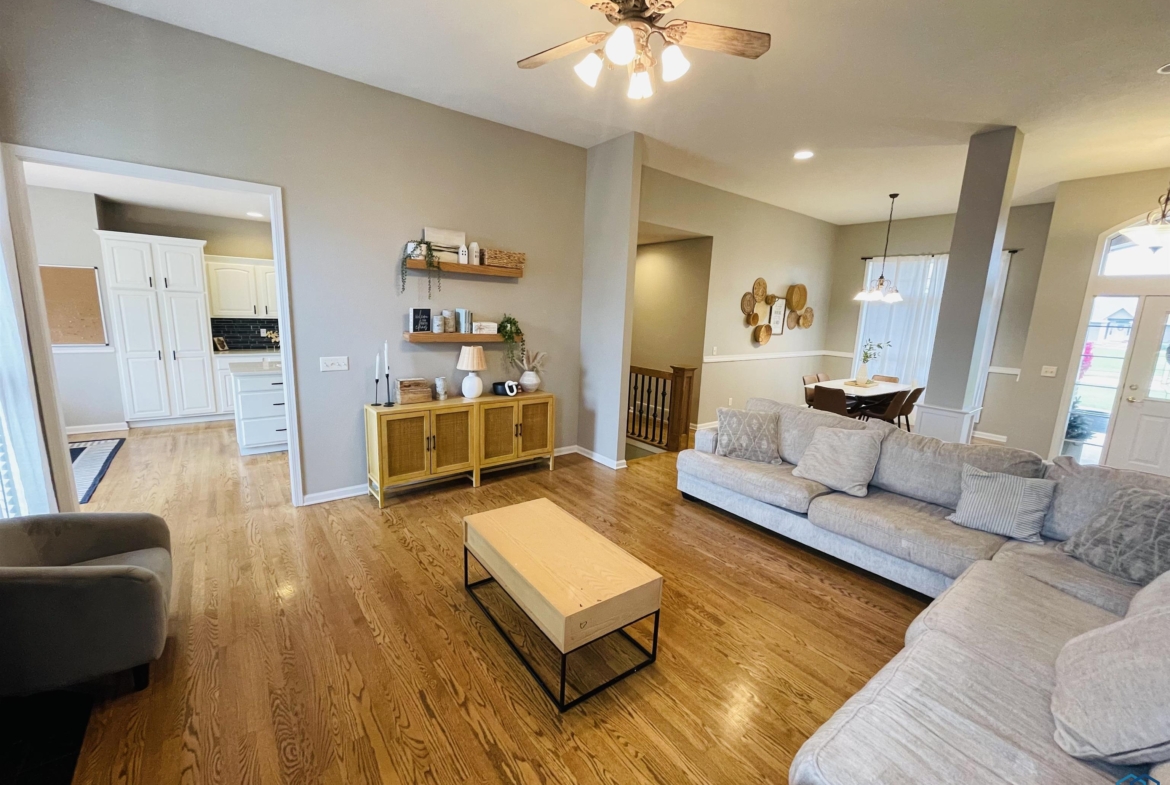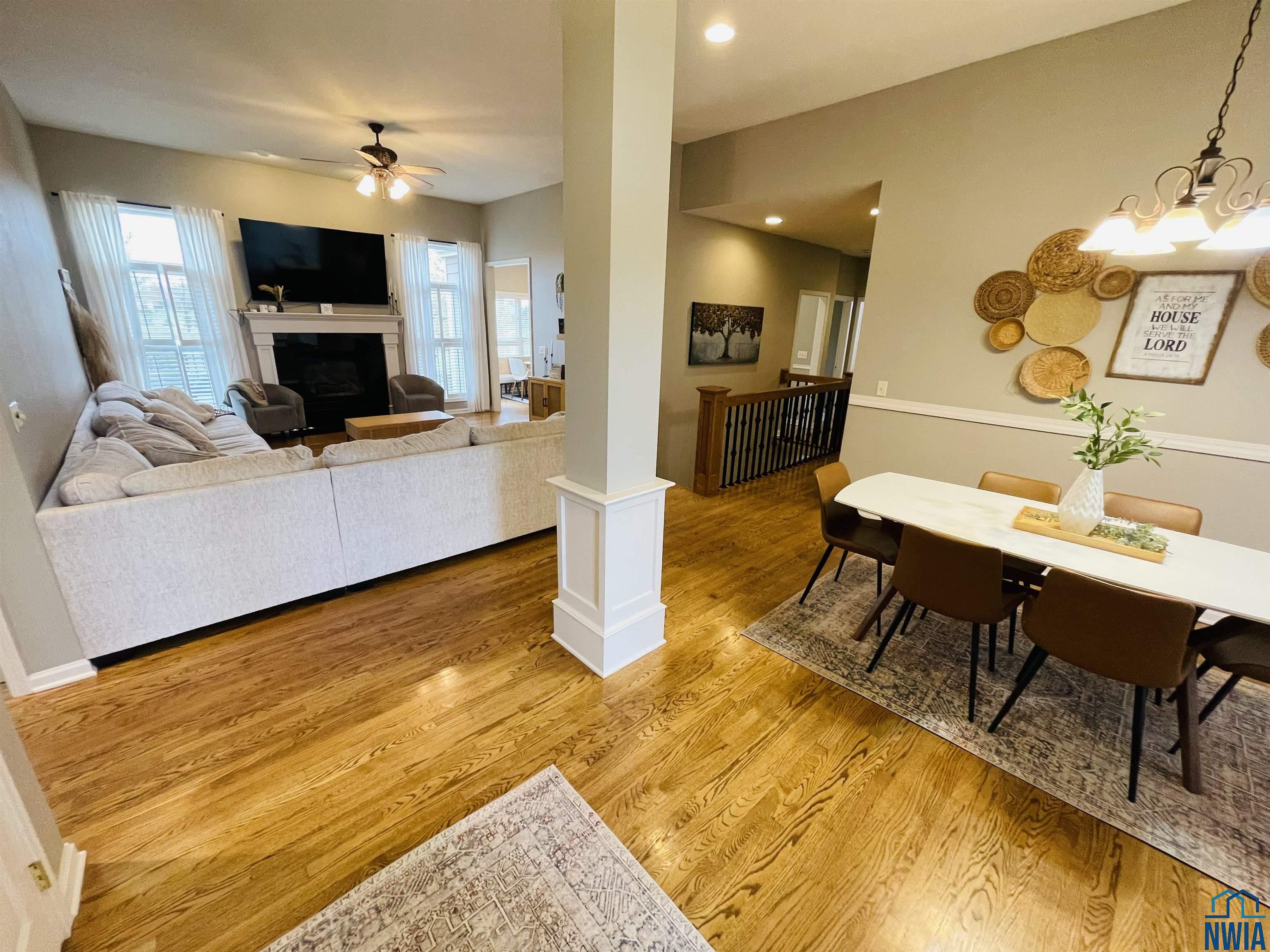 | Living | Main | 17x16 | Hardwood floors, tiled gas fireplace, floating shelves |