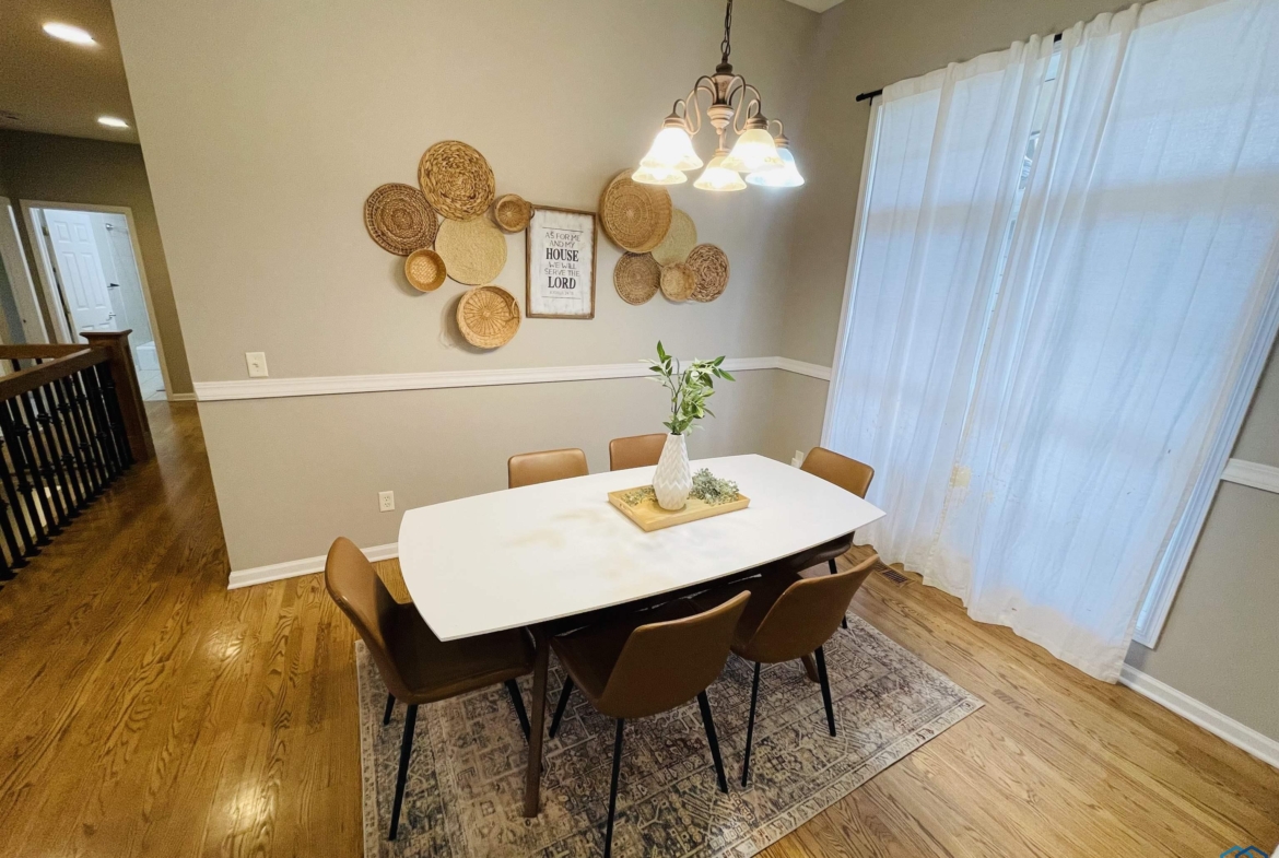 | Dining | Main | 9x12 | Hardwood floors, light fixture, window overlooking yard |