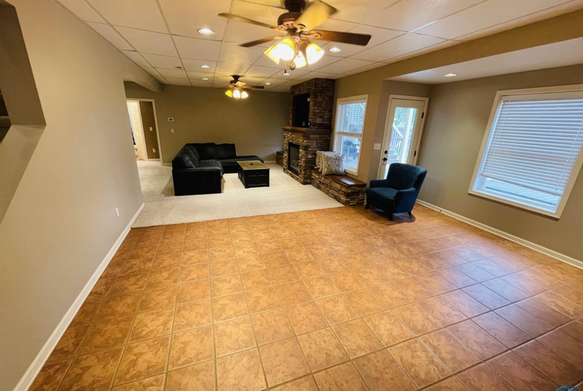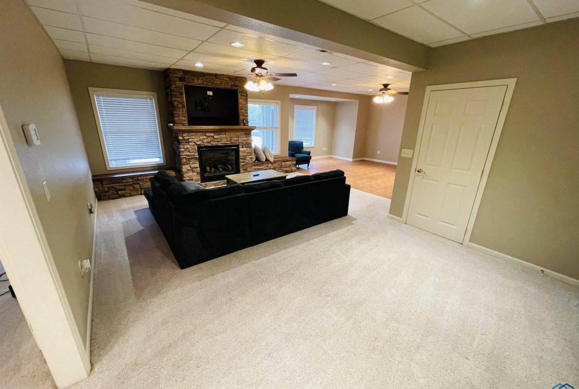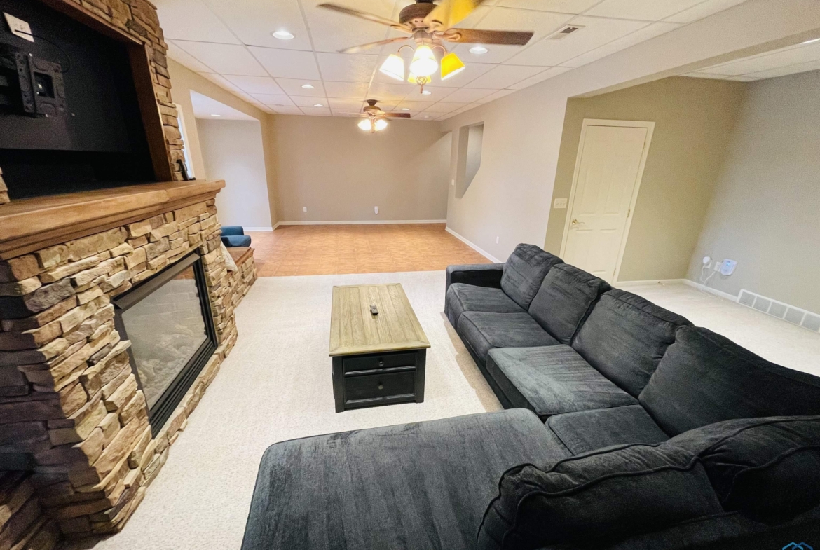 | Family | Basement | 30x21 | Stone gas fireplace from floor to ceiling, door to backyard |