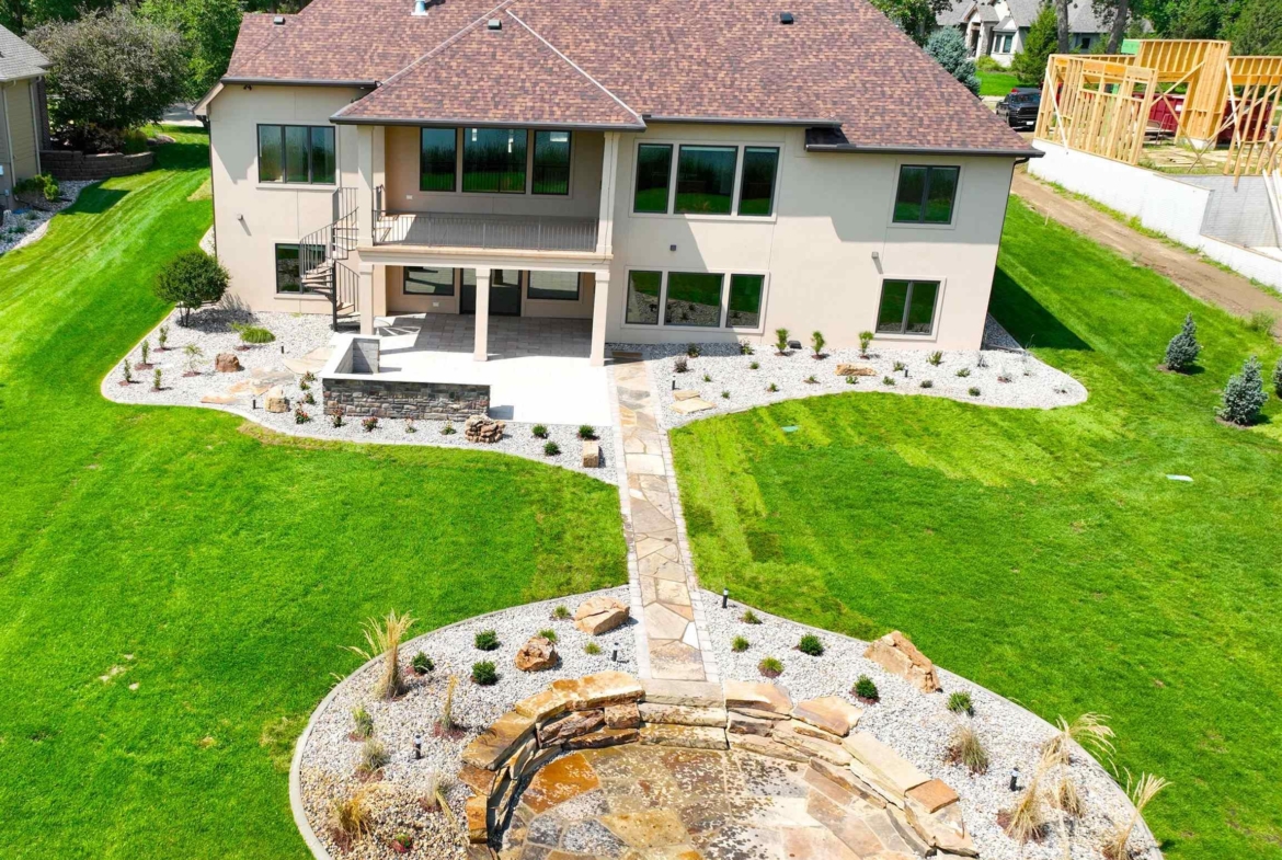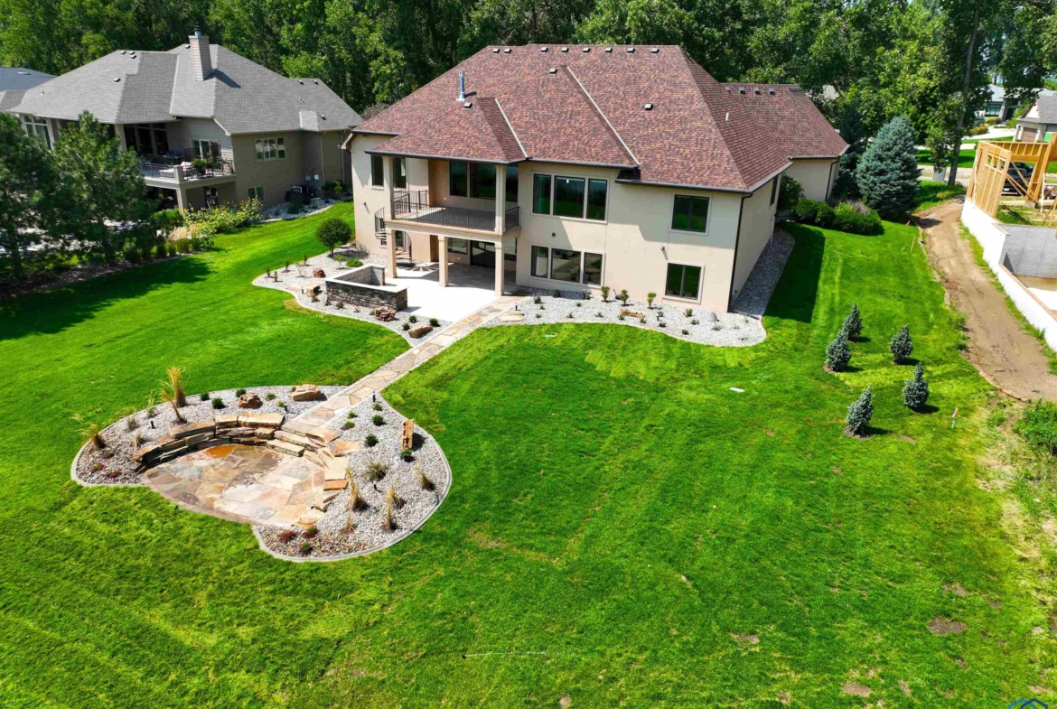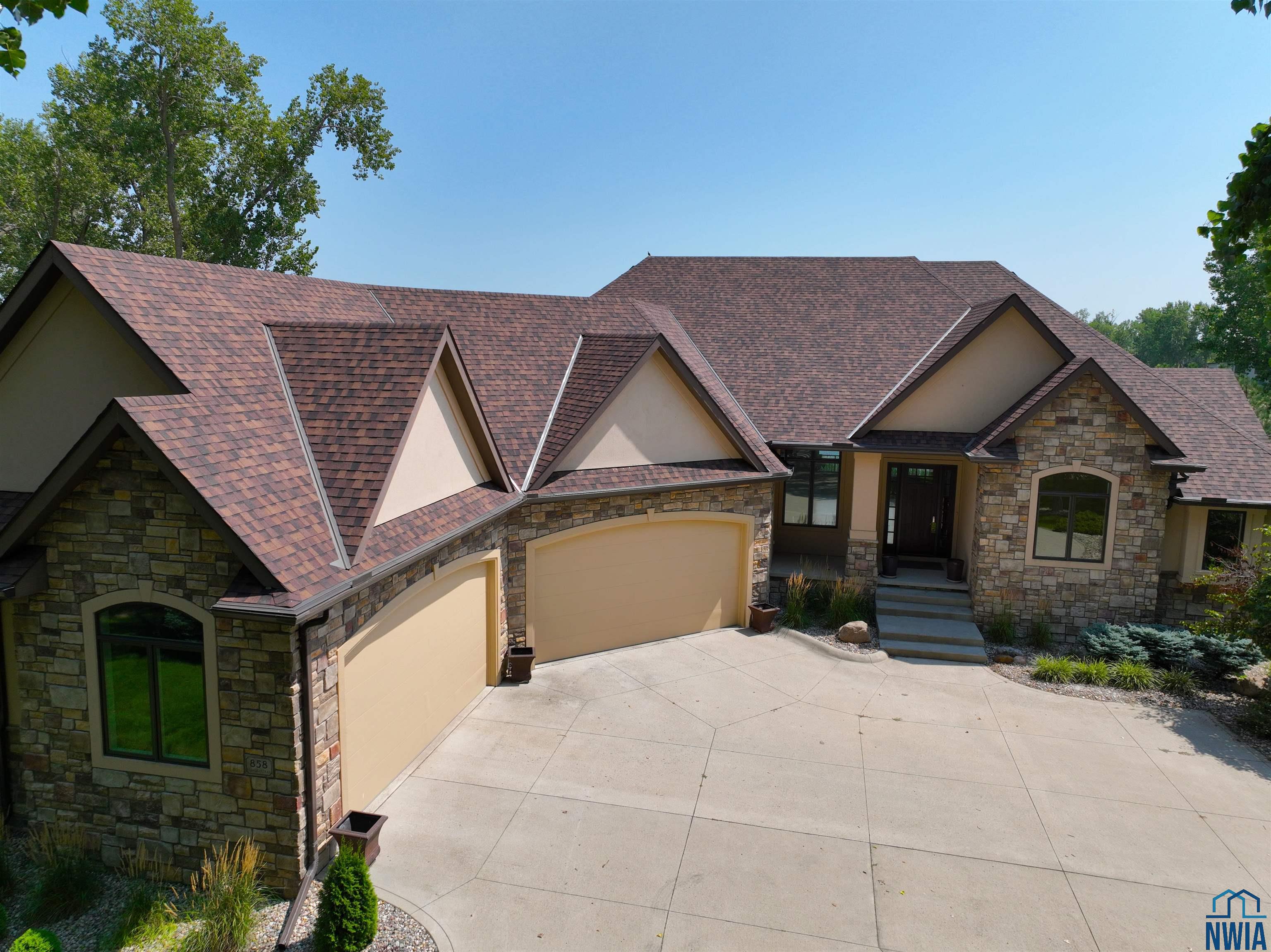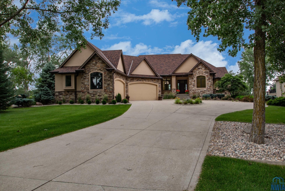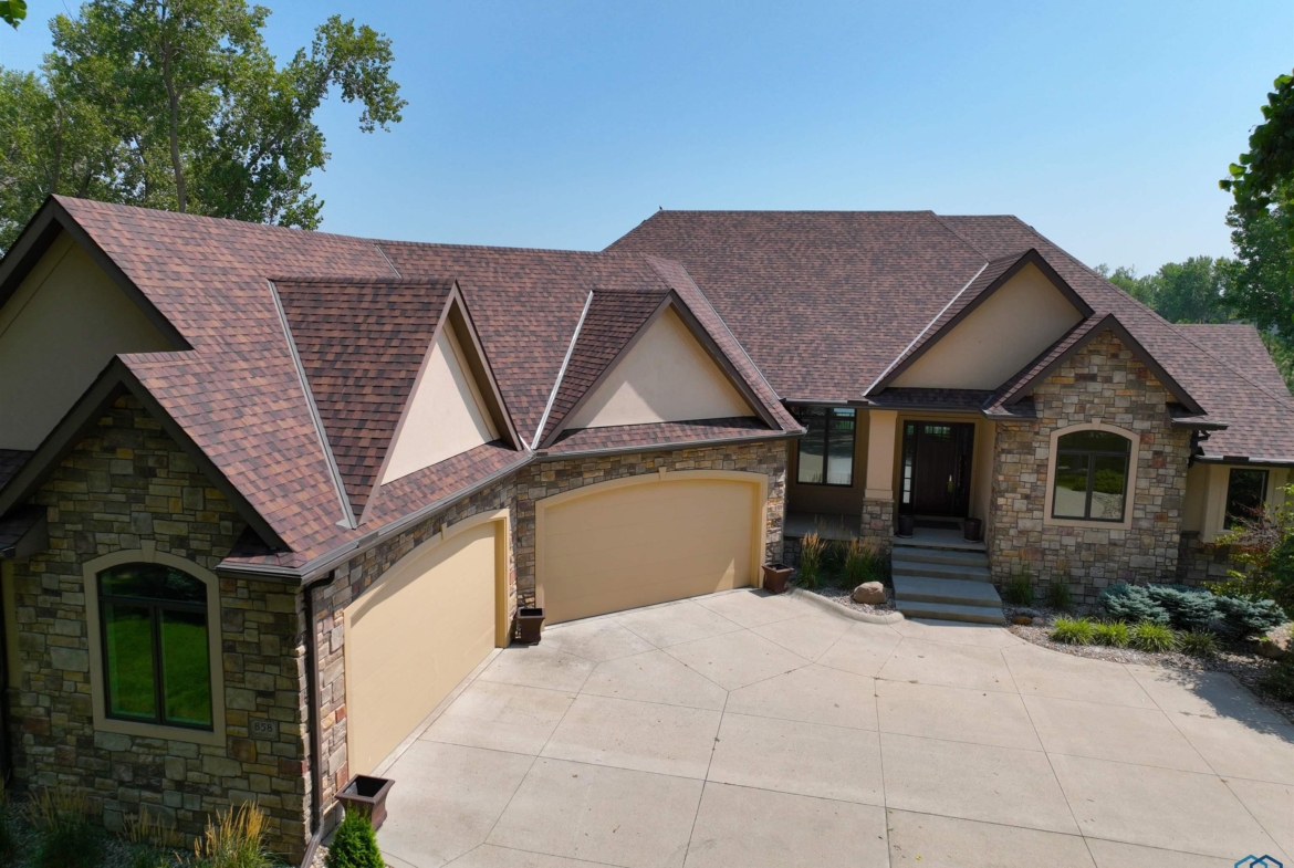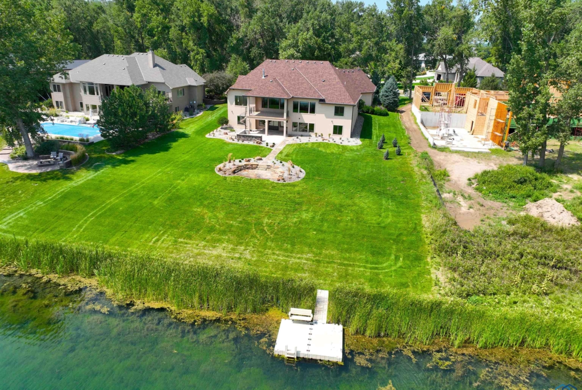 Sitting on Spanish Bay Lake, this walkout ranch home with 5 bedrooms, 4.5 bathrooms and 5300+ sq. ft. of finish has had many updates including new hard rock maple floors in the living room, dining room, and den as well as a new outdoor kitchen space. As you drive up you will notice it has a 4 car garage with new heater, new poly-aspartic floor, and all new paint. Welcoming porch brings you in the entry with tile floor and crown molding. To the right is the den and to the left is the formal dining area. Next you will notice the fabulous views of the lake from the living room with gas FP with stacked stone surround and built ins. Showstopper kitchen here with cherry cabs, tile floor, granite counters, island, SS appliances (new Bosch DW), 7 x 5 pantry, eating area with door to covered concrete deck. A laundry room and half bathroom are conveniently located on the main floor. The master suite has bedroom with lake view and carpet and a bathroom with dbl vanity, cherry cabs, granite, heated tile floor, soaking tub, tile shower, toilet room and a 11×9 WIC. 2 more bedrooms on the main each have WIC and carpet. A full bathroom with tub/shower combo serves these bedrooms. Lots of spaces in the lower level to entertain or relax with the family room with theater system and gas FP with stacked stone surround. Or go to the wet bar area with room for seating or game table, tile floor, and granite counters. Access to the covered patio, new outdoor kitchen, relandscaped back yard, 2nd patio by lake /views from both areas. Junior bedroom suite has a bedroom with lake view, a WIC and 3/4 bathroom is attached and can be accessed from the hall, too. Second junior bedroom also has lake view and WIC and a there is a 3/4 bathroom to serve that bedroom. A room that is currently a workout room could also serve as 2nd office/den. Plenty of storage throughout this home. Entire interior of the home has been repainted, including all the ceilings, walls & trim 2024.See extra Feature sheet.