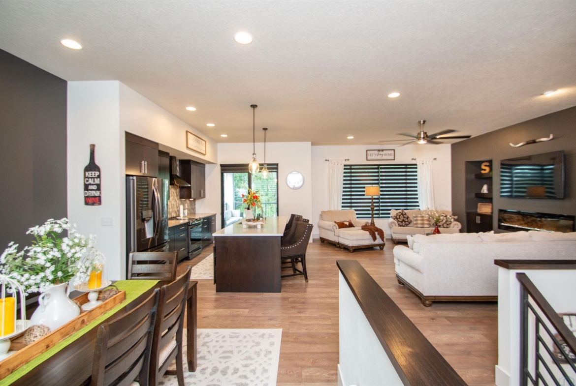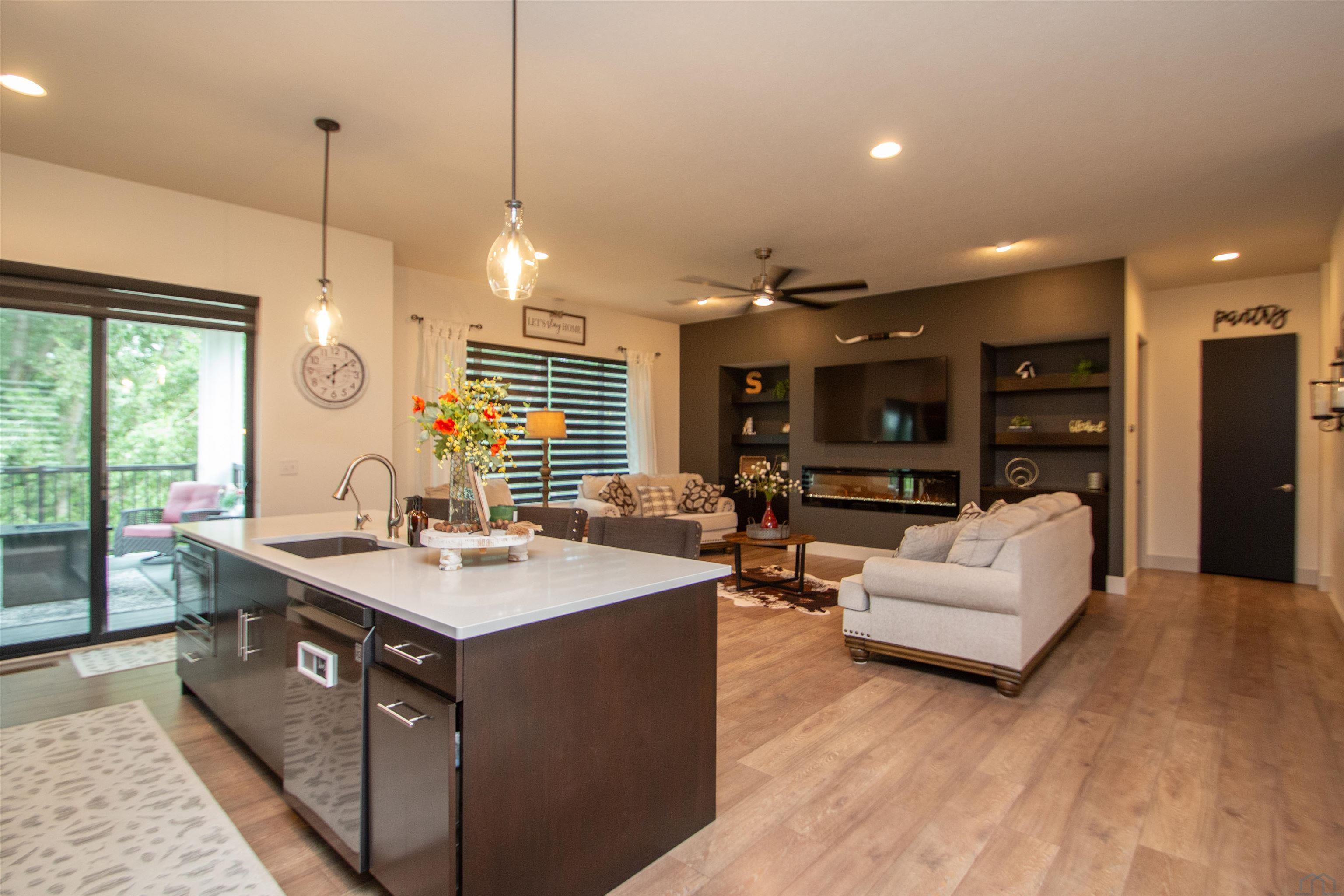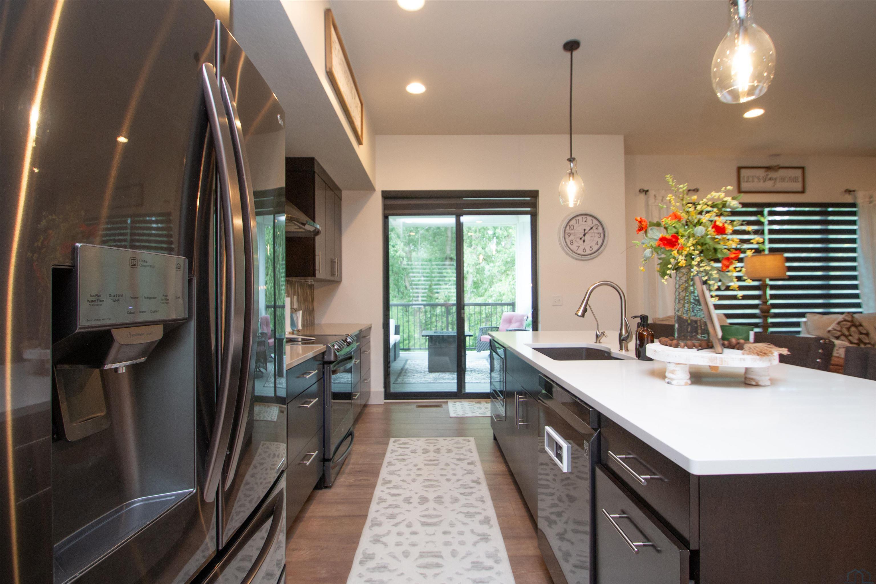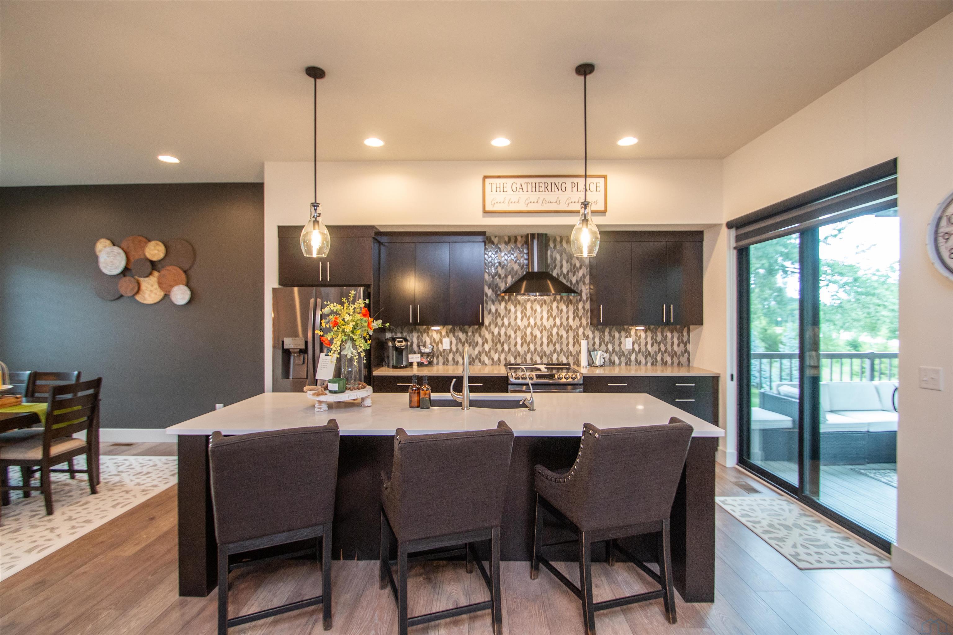 One owner and gently lived in. This townhome shows better than new construction. Interior and garage all repainted in 2022. New carpet on the steps in 2024. 10′ ceiling main floor and open floor plan. Does have formal dining or flex room besides the kitchen area and living room spaces. All appliances stay and custom cabinets. Island in the kitchen which goes to covered trex deck with pull down screens. Master bedroom has Walk in closet with washer/dryer included. Great master bath with soaking tub, oversized walk in shower and 2 floating vanities. Second bedroom on the main floor and another full bath. Lower level was finished upon purchase: Barn door installed as entering Rec room with polished flooring, wet bar area, 3rd bedroom and 3/4 bath. Second washer/dryer at this level. High end finishes when originally built. Great storage areas. Garage floor just painted, heater, cabinet and vacuum included. Brand new exterior railing, new front door storm/screen installed. Willows Association fee: $475 per quarter (lawn care, sprinkler, snow removal, garbage collection) DD Association: $90 per quarter.