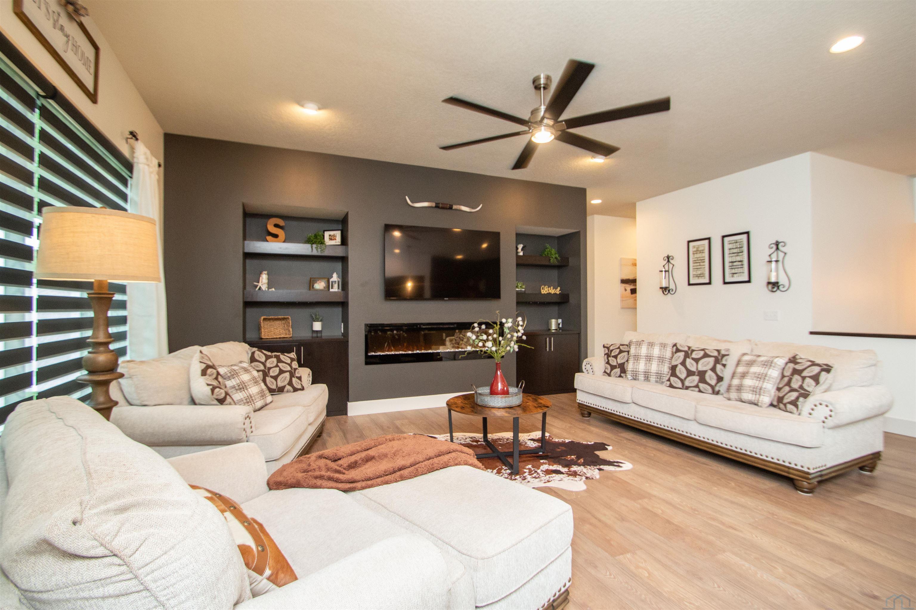 | Living | Main | 16 x21 | Eng flooring, built in shelving, electric fireplace |