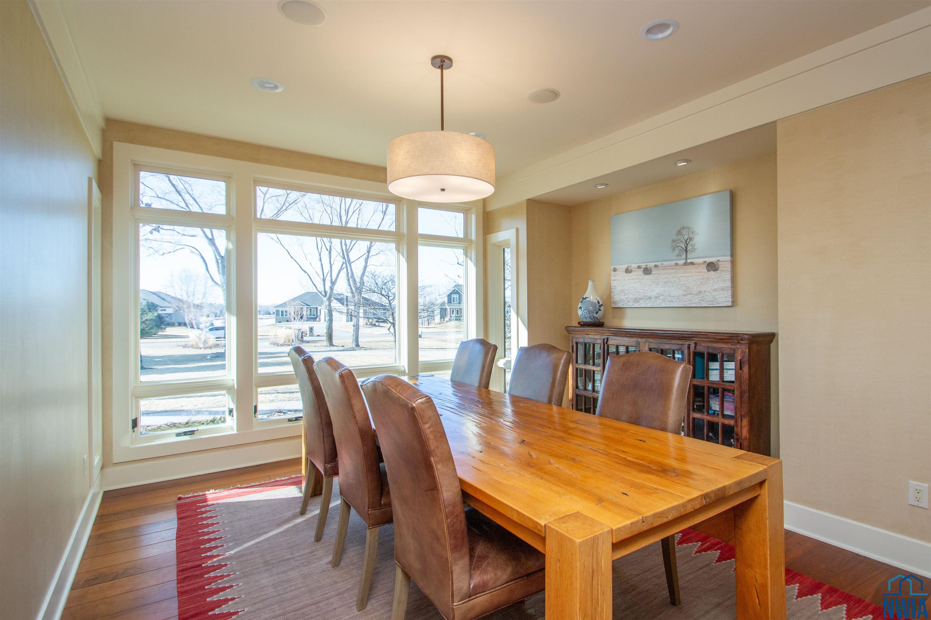 Extraordinary Arts & Crafts style walkout ranch home with 5 bedrooms, 3 bathrooms & 3 car garage has timeless design choices & is meticulously maintained. Rare opportunity for custom home of the highest quality. Acclaimed SALA architects in Minneapolis designed this home with an efficient yet spacious open floor plan. Abundant natural daylight and large windows throughout the home, 9’ min ceiling height. Exterior details include stone on all sides of the home & large Ipe wood deck. Copper shed roofs extend walls of windows to take advantage of expansive views north to a mature forest and south to ponds. The front porch welcomes you with its oversized quarter sawn white oak door & blue flagstone which continues into the foyer. Main floor features wide plank American black walnut floors in living spaces and all bedrooms. Living room enjoys reclaimed Douglas fir ceiling beams & mantle, built in copper leafed displays and a stunning stacked stone FP. Beautiful and functional chef’s kitchen with alder & maple cabinets, granite & sycamore counters, granite sink & SS appliances. Laundry room features stained concrete floor, cabinets, dbl closet & sink. Relax in the master bedroom suite with tin accent ceiling, french doors to deck, custom alder closet & 2 way FP to the bathroom with soaking tub, travertine shower, marble counter & daylight mirrors. 2 more bedrooms on the main each have dbl closets & big windows. Full travertine & marble bathroom for these BR’s and guests. All closets have custom shelving & built-ins. Zoned speaker system indoors & out. The walkout lower level has family room with surround sound, stained concrete floor, brick walls & 2 way FP. Glass doors take you to an expansive alder library with WIC (could be BR or office). Off the family room is a wet bar with large walk-in wine cellar (could have other uses). There is one more BR with stained concrete floor & large WIC. Finally a ¾ bath with marble counter & alder cabinets. Open enroll Dakota Valley.