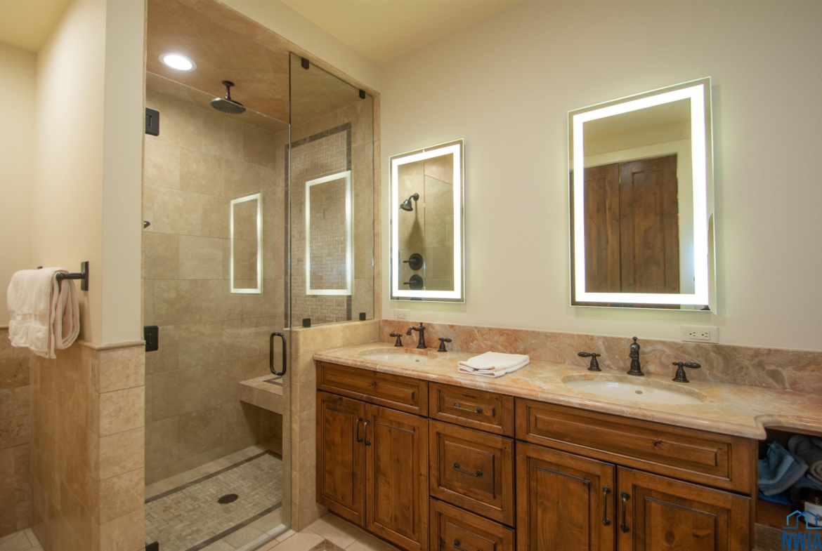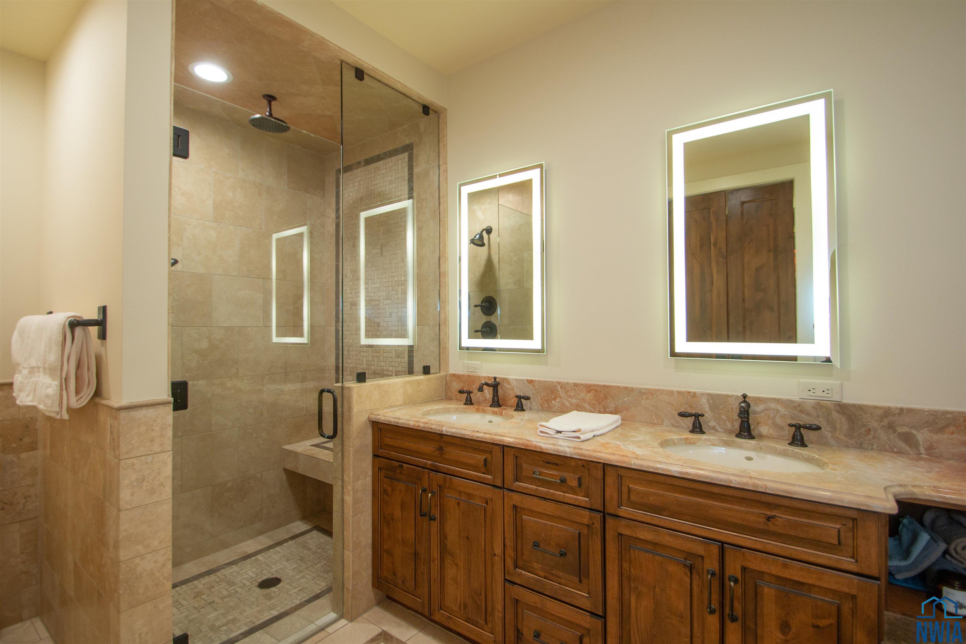 Full BathMain13 x 8tub, tile shower, daylight mirrors, 2 way gas fp, marble van