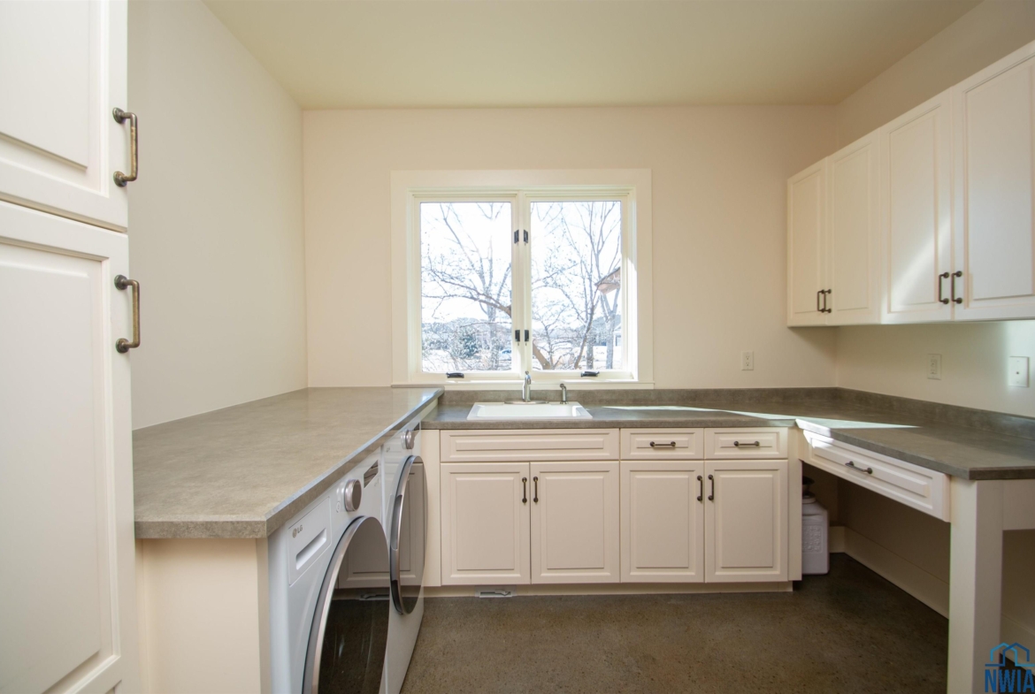 LaundryMain10 x 9stained concrete floor, sink, cabinets, double closet