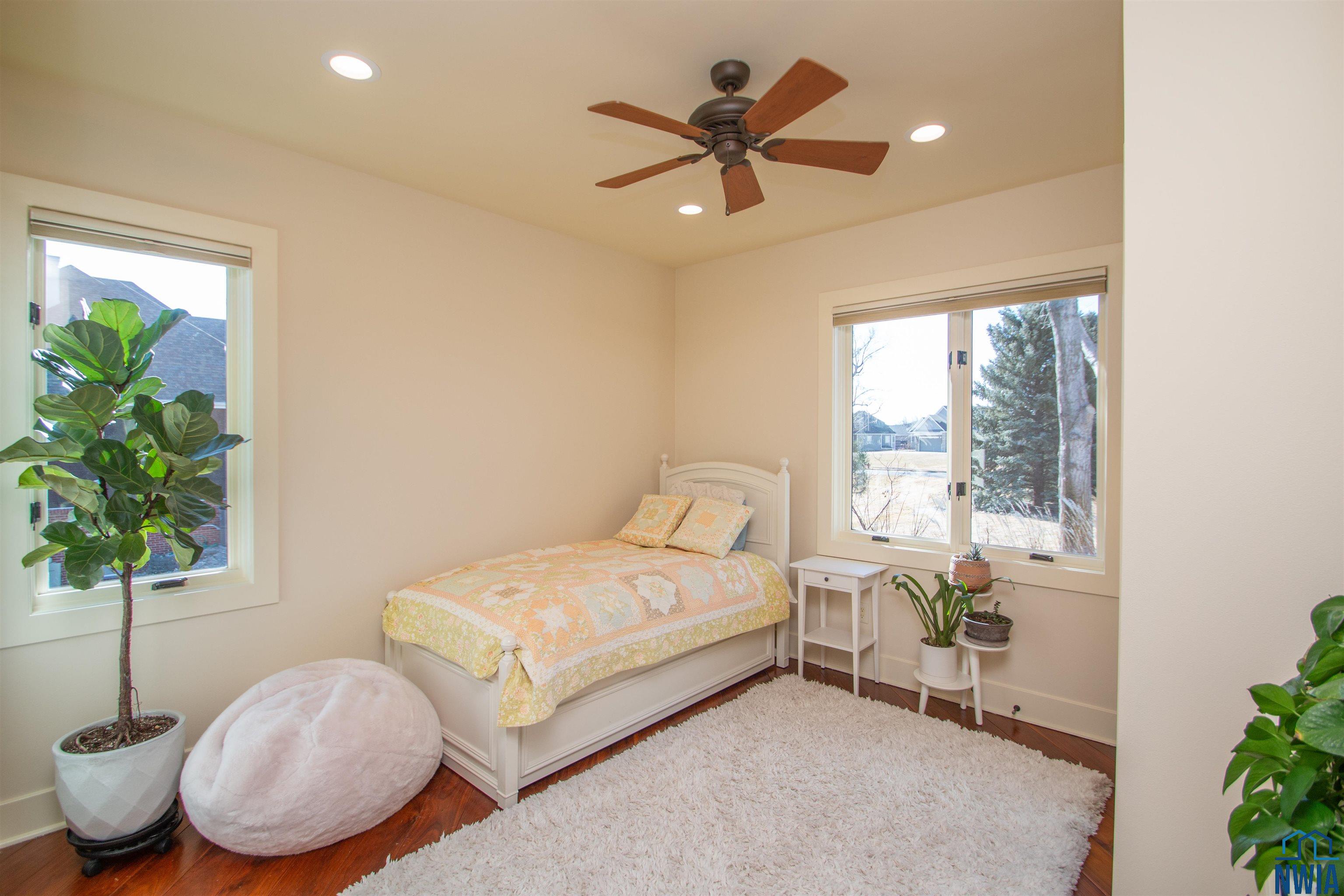 BedroomMain12 x 13walnut floor, dbl closet, 8' doors, walnut fans