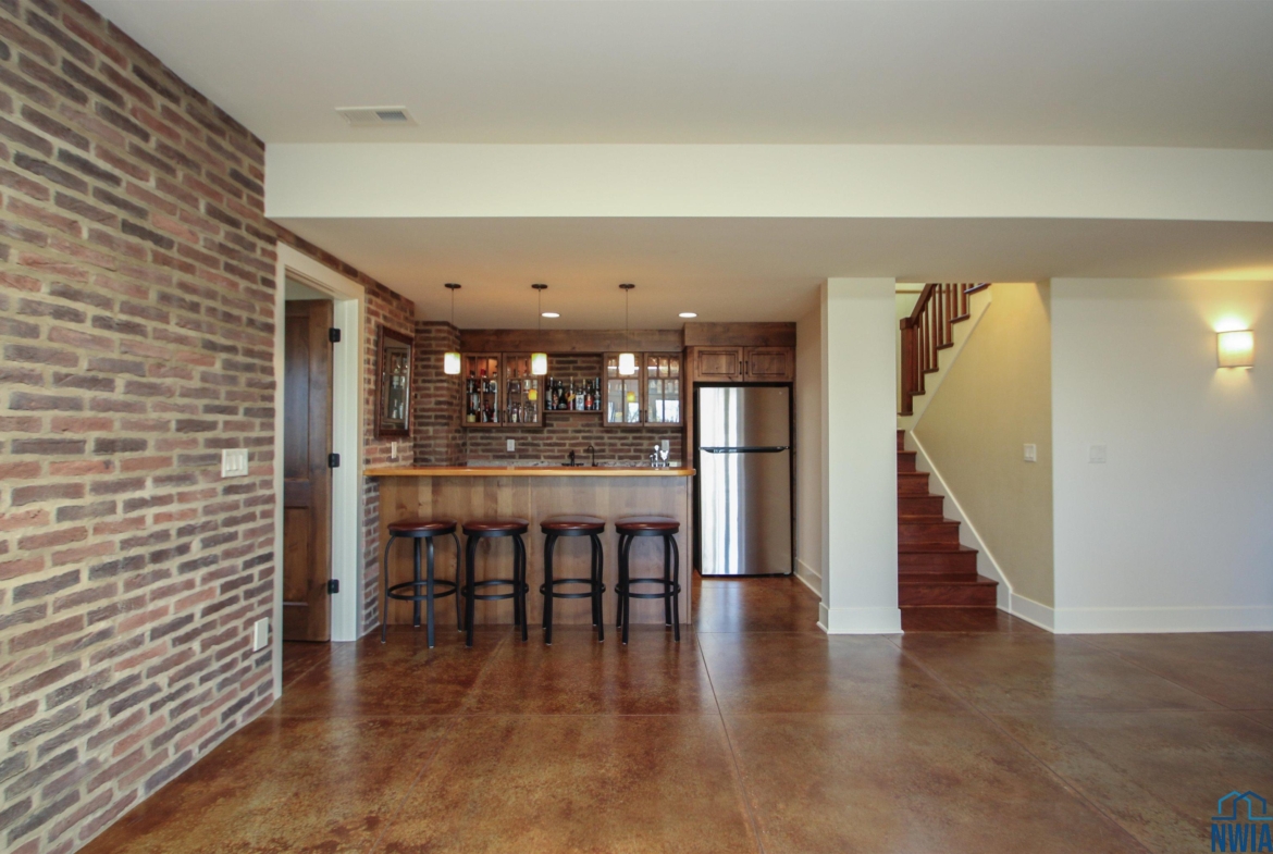 FamilyBasement30 x 19stained concrete, walkout, 2 sided fp, brick veneer wall