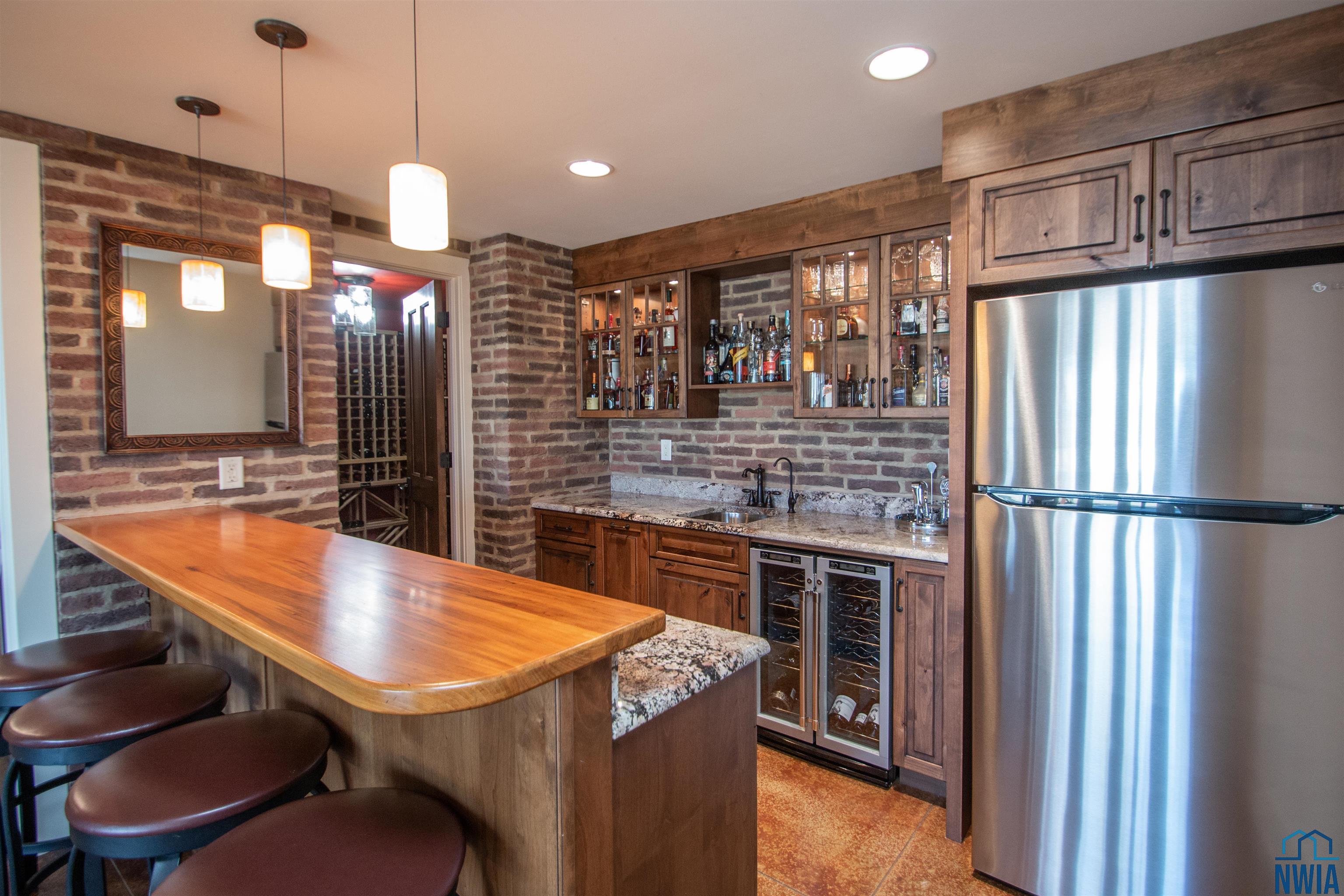 OtherBasement8 x 10wet bar-alder cabinets, granite, bev frig