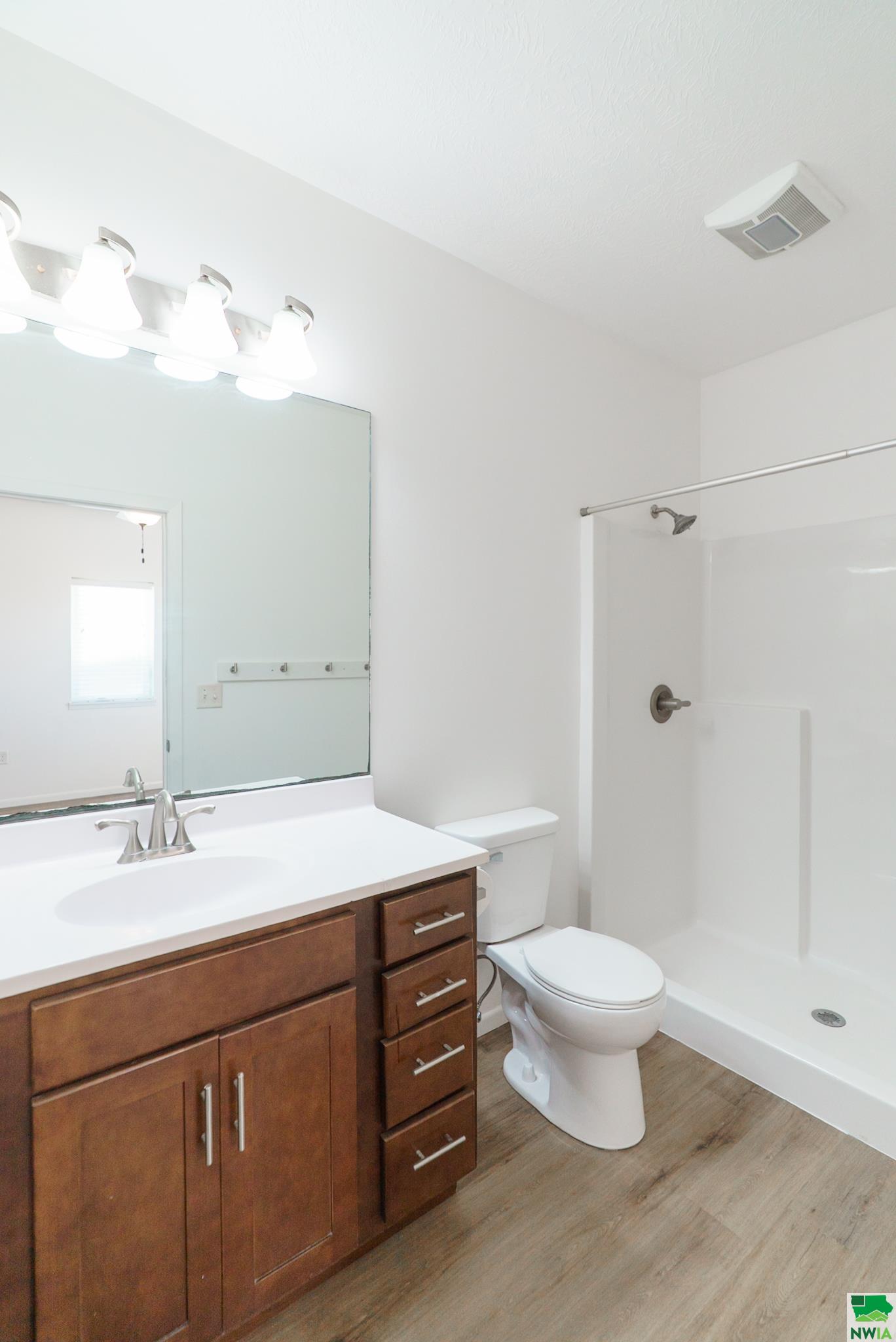 3/4 Bath | Main | 6 x 8 | Master bath, LVT, cherry vanity |