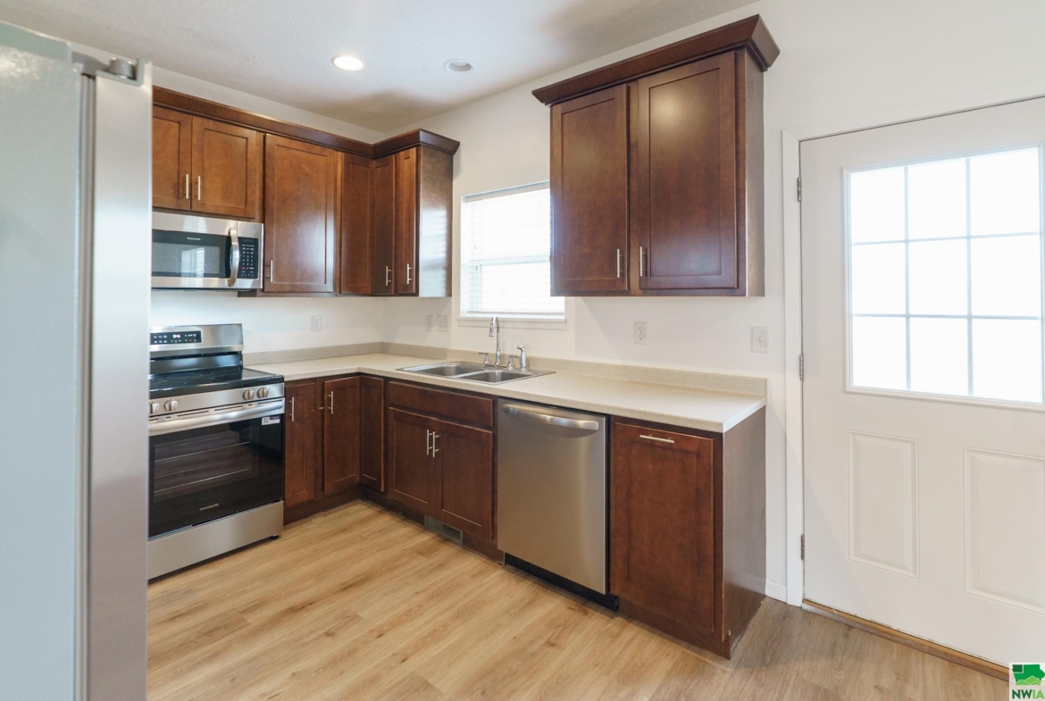 Welcome to 929 Campbell Street in North Sioux City, SD – a beautifully maintained duplex built in 2018, offering modern comforts and thoughtful updates throughout. Situated on a spacious, flat lot that extends all the way to the street behind, this property provides both curb appeal and functionality. Inside, you’ll find fresh paint, brand new luxury vinyl tile, and plush carpet that give the home a crisp, move-in ready feel. The kitchen shines with rich cherry cabinets, laminate countertops, and stainless steel appliances that all stay with the home. The main floor offers a comfortable layout with a primary suite featuring a ¾ bath, complete with vanity that matches the kitchen cabinetry and walk-in shower. A second bedroom with a double closet and a full hall bath provide flexibility for guests. Downstairs, you’ll love the expansive living space with all-new carpet, a third bedroom with egress, and another full bathroom—perfect for entertaining, relaxing, or hosting overnight guests. Other highlights include an attached one-stall garage with opener and keypad, plus the peace of mind knowing the sellers have taken excellent care of the home. This property is being offered separately from 931 Campbell Street but can also be purchased together—an excellent opportunity for an owner-occupant, investor, or someone looking for multi-generational living. 929 Campbell Street is truly a blend of comfort, convenience, and value—ready for its next chapter.